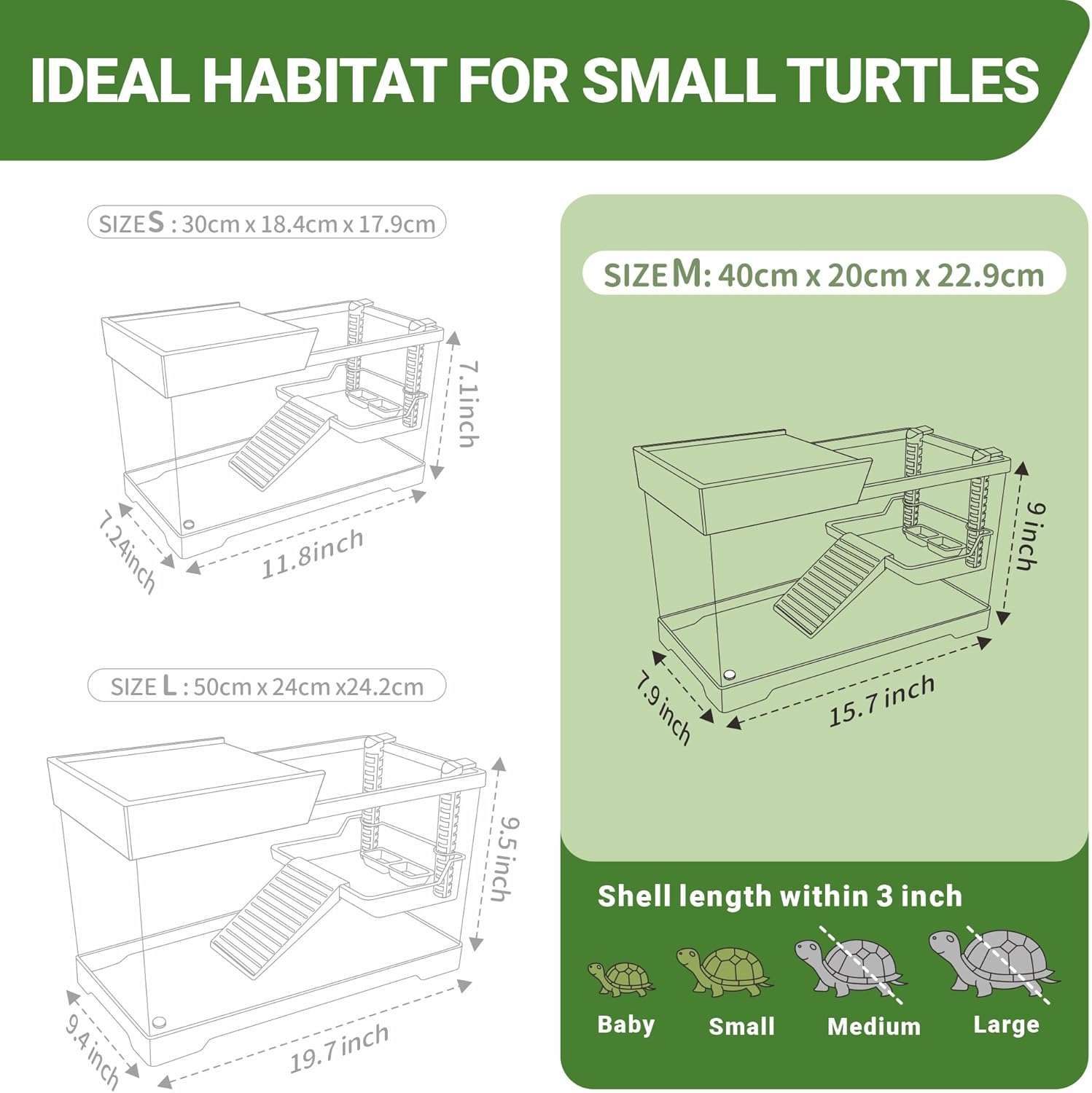 [Diseño transparente de 360° para ver] Construido a partir de paneles acrílicos totalmente transparentes, nuestra jaula de tortuga te permite disfrutar de una visión clara de 360° de tus mascotas y su entorno. Además, tiene una tapa elevada que no solo amplía el espacio del tanque para vivir, sino que también evita que tu mascota se escape.