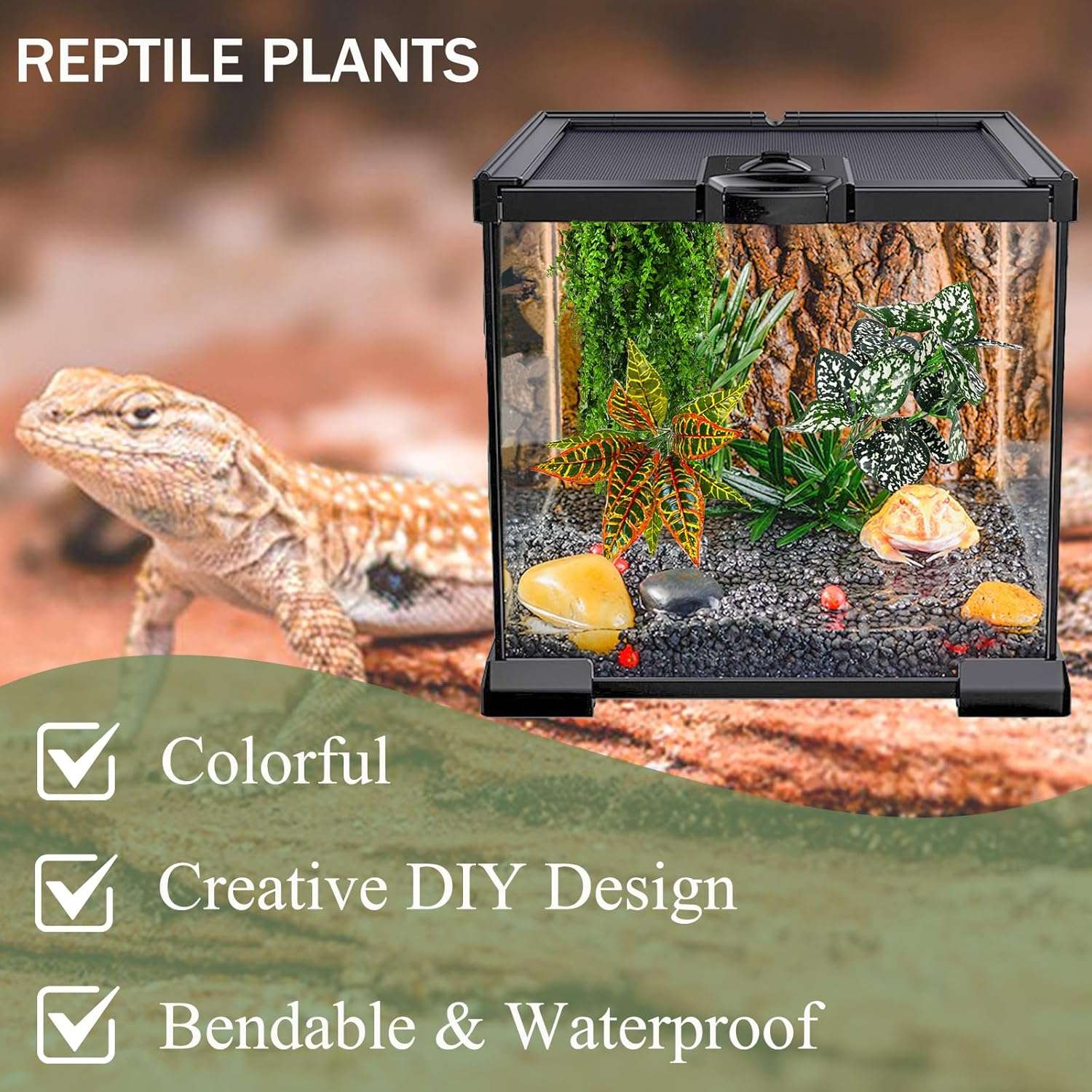 Ideal para reptiles y anfibios: los accesorios de tanque Gecko son perfectos para dragones barbudos, cangrejos ermitaños, ranas, geckos, iguanas, lagartos, serpientes, arañas, tortugas, pitones de bola, camaleones, etc.