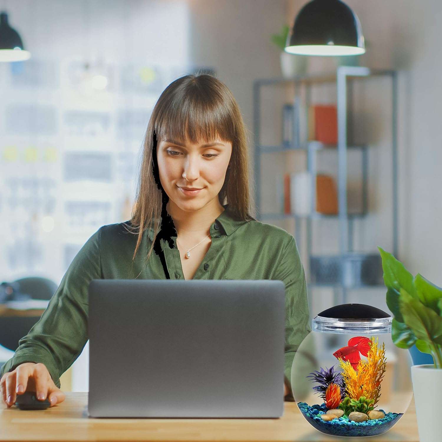 Ángulo de visión superior: la visualización panorámica de 360° ofrece el mejor efecto visual y claridad cristalina, lo que te permite disfrutar del mundo de la pecera de escritorio desde cualquier ángulo.