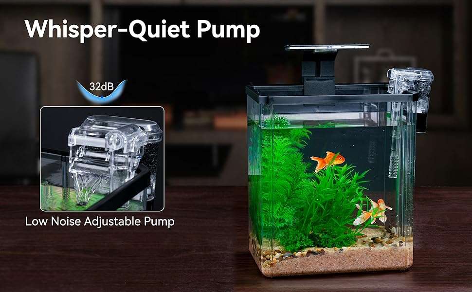Bomba silenciosa: la bomba de tanque de peces betta incluida mantiene agua limpia y fresca con un mínimo esfuerzo, reduciendo drásticamente la frecuencia de cambio de agua. Diseñado para un funcionamiento casi silencioso: su sonido se vuelve prácticamente imperceptible a niveles óptimos de agua, lo que permite un sueño ininterrumpido incluso cuando se coloca junto a la cama