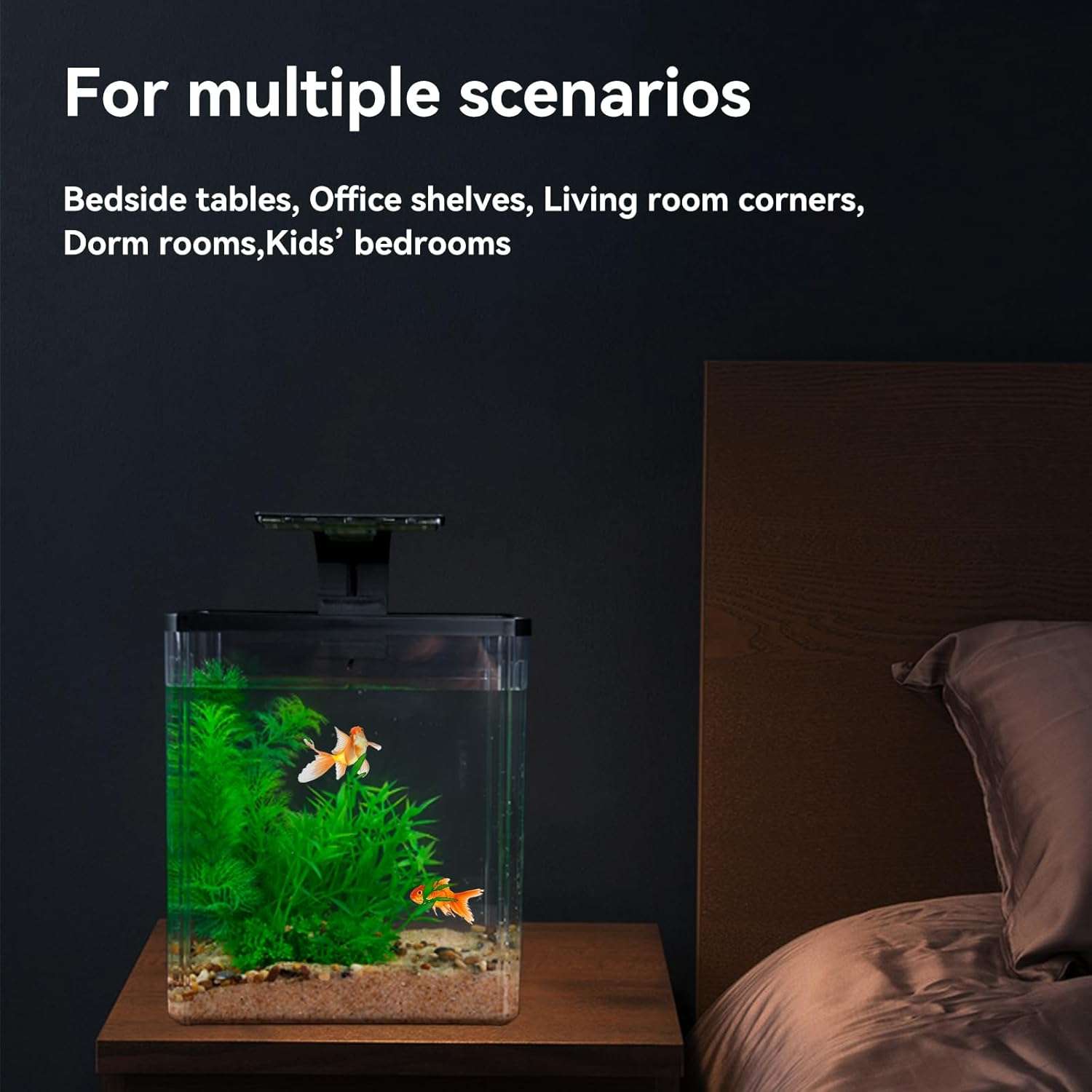 Prospera en espacios pequeños: este tanque de peces de colores anida perfectamente en cualquier lugar: mesitas de noche, estantes de oficina, esquinas de sala de estar, dormitorios o dormitorios de niños, convirtiendo lugares estrechos en oasis serenos y llenos de vida con estilo sin esfuerzo