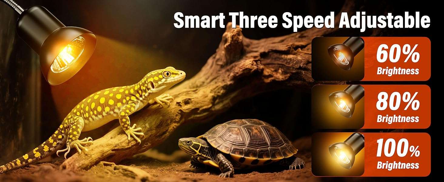 Diseño de boca de campana mejorado: esta lámpara de calefacción mejorada con un diseño de boca de campana TFNN proporciona una gama más amplia de rayos ultravioleta UVA/B en comparación con el diseño de los modelos normales. Puede calentar e iluminar simultáneamente múltiples reptiles. La luz es ajustable, por lo que es adecuada para diferentes estaciones y varios reptiles, y es extremadamente conveniente de usar.