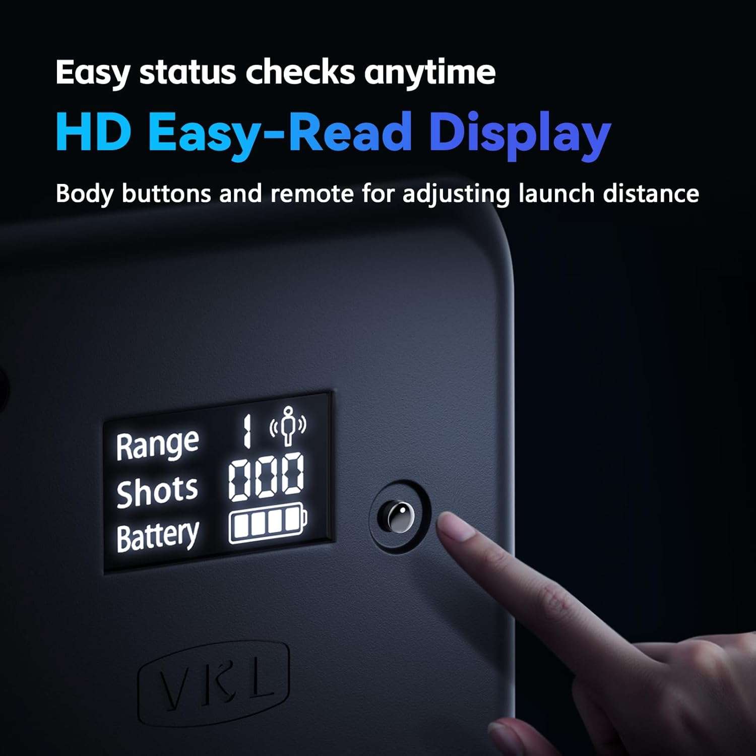 El equipo cuenta con una pantalla de alta definición de muy fácil lectura que muestra claramente los lanzamientos iniciados el ajuste de distancia y la duración restante de la bateria para un monitoreo sin complicaciones Puede controlar este lanzador eléctrico a través de su control remoto o los botones integrados para establecer tres distancias de lanzamiento exactas de 300 centímetros 600 centímetros y 850 centímetros incorporando además sensores de seguridad de pausa automática para proteger a su mascota en todo momento