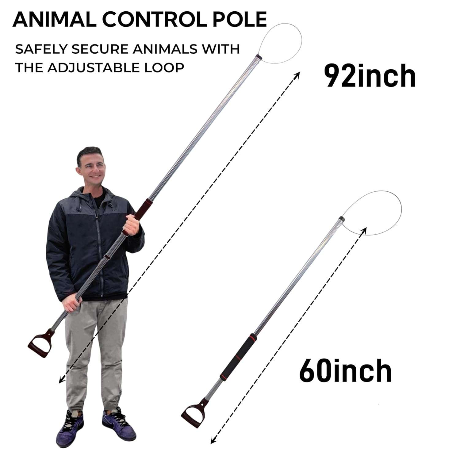 Esta pertiga de control es una herramienta profesional indispensable para el manejo seguro y humanitario de animales. Su diseño de largo alcance permite mantener una distancia segura mientras se captura o maneja a perros, gatos y fauna silvestre de diversos tamaños.