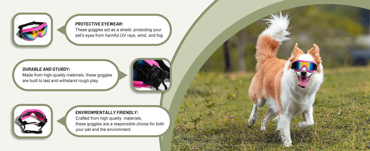 Estas antiparras profesionales son el accesorio indispensable para proteger los ojos de su perro del viento, el sol y la tierra. Diseñadas especificamente para actividades al aire libre, garantizan seguridad y comodidad total para acompañarlo en paseos en moto, bicicleta, camioneta o trekking.