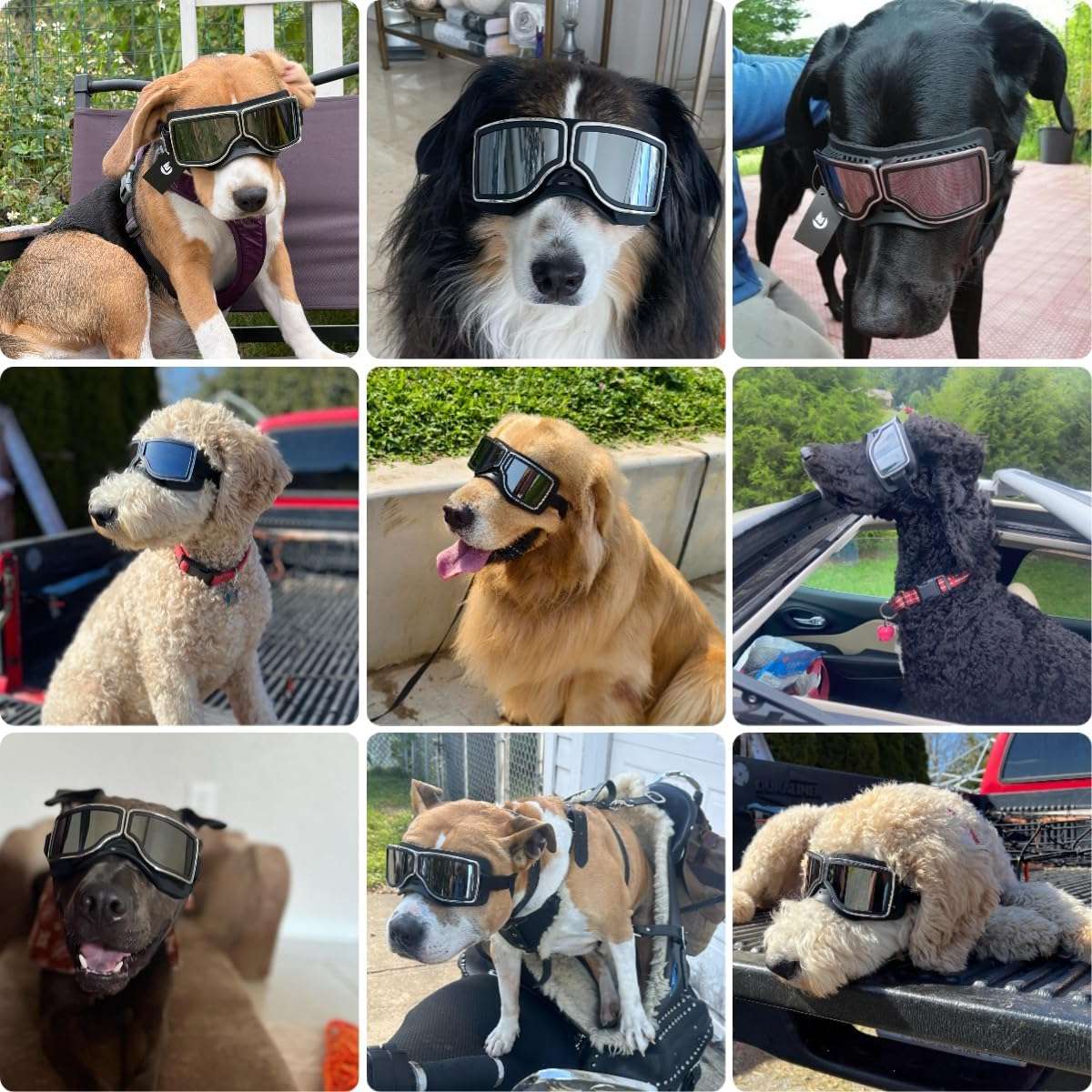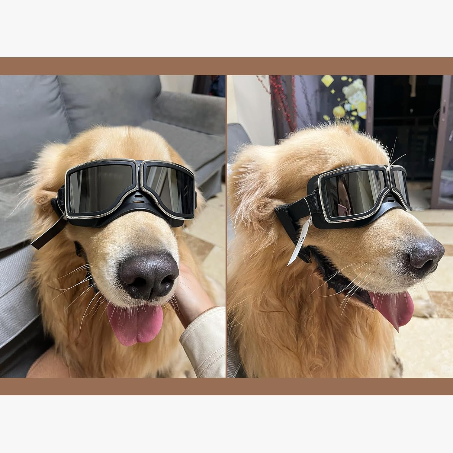 Estilo Aviador y Lentes Curvas: Look unico y ajuste anatomico. Estas gafas destacan por su diseño de aviador que contornea perfectamente la cara del perro gracias a sus lentes curvas especiales. Aportan una estetica elegante y excepcional, convirtiendo a su mascota en la atraccion del parque o del viaje.