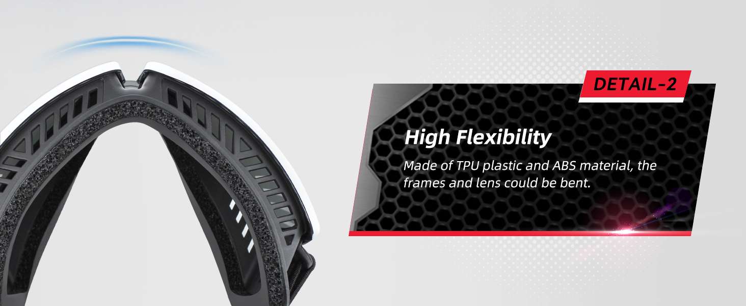 Marco de Goma Suave con Ventilacion: Comodidad superior. Hechas de material ABS resistente pero con un marco de goma suave y flexible que se apoya en el hocico. Cuentan con un sistema de ventilacion lateral que garantiza el flujo de aire, evitando el calor y la humedad dentro de los lentes.