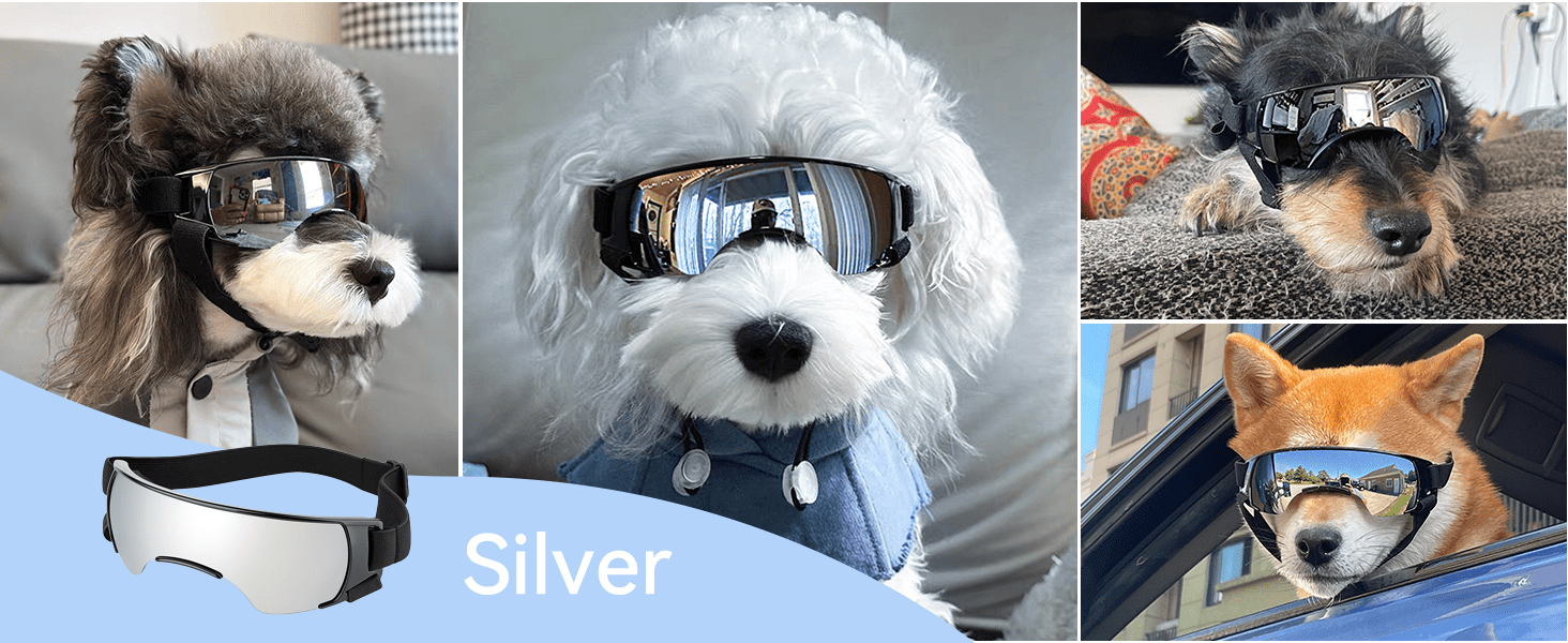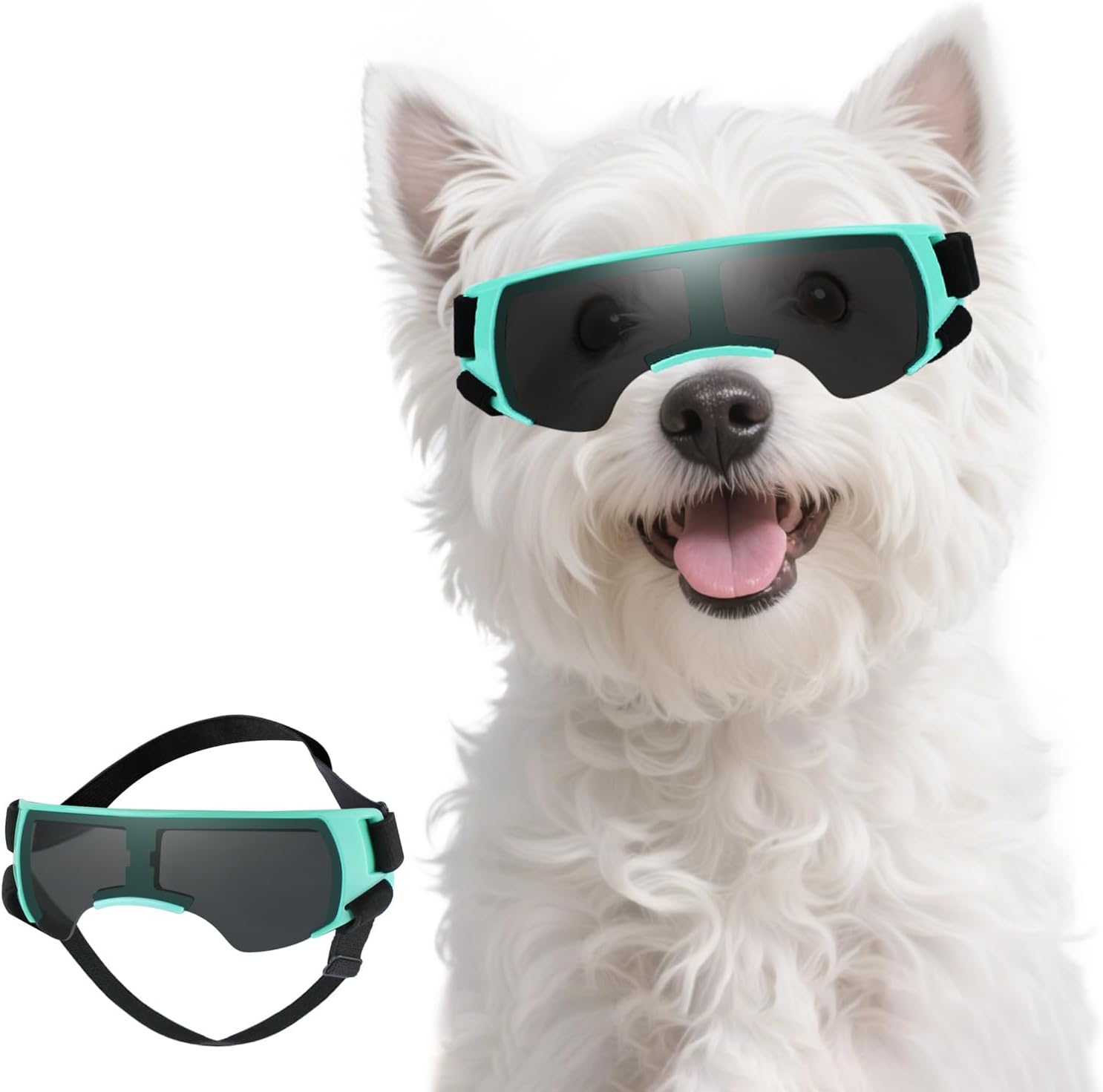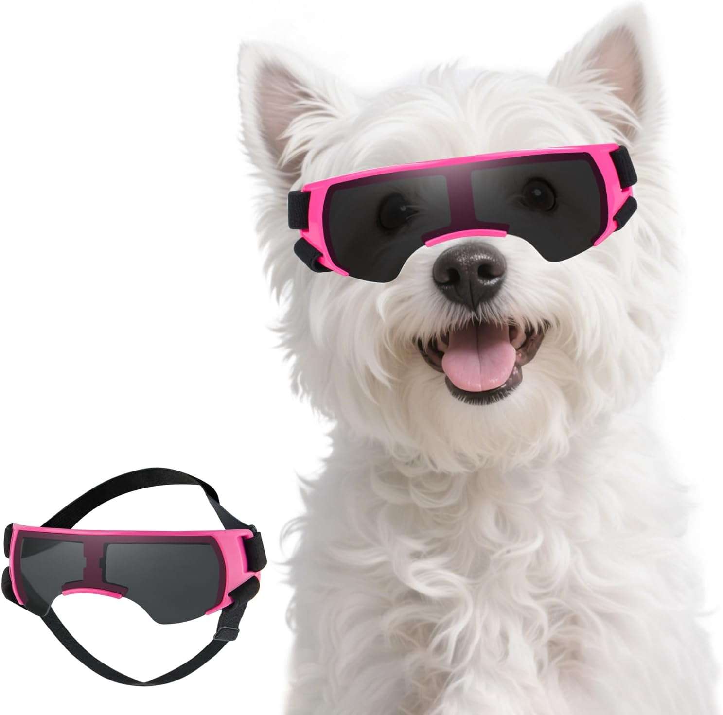 Estos lentes de sol PETLESO estan diseñados ergonomicamente para la comodidad de razas pequeñas. Con una lente curva continua y un acolchado interior suave, protegen los ojos sensibles del viento y el sol, siendo el accesorio indispensable para paseos en moto, bicicleta o caminatas largas.