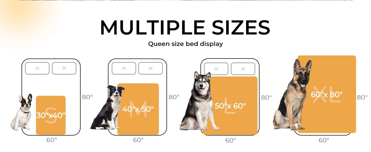 127 x 152 cm: Tamaño grande. Cobertura amplia para perros de razas grandes, o para proteger la superficie de una cama de 1.5 plazas.