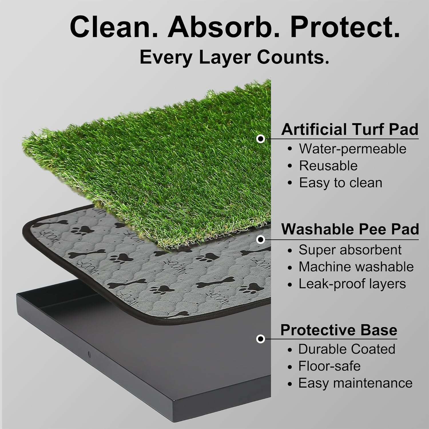 Pensando en ahorrar tiempo y esfuerzo su diseño facil de limpiar incluye una alfombrilla de cesped artificial totalmente lavable y una bandeja desmontable lo que hace que el mantenimiento sea rapido y sencillo Ya sea en interiores balcones o patios esta almohadilla ofrece una solucion sumamente versatil para satisfacer las necesidades de higiene de diferentes mascotas y hogares