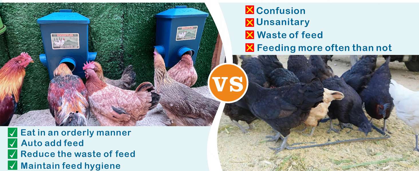 Deja de botar dinero. Estos comederos cuentan con un innovador diseño de puertos que evita que las gallinas escarben y dispersen la comida, reduciendo significativamente el desperdicio. Además, su estructura impermeable y tapa segura protegen el grano de la lluvia y la humedad, manteniéndolo seco y fresco en exteriores. La abertura de boca ancha está pensada para acomodar incluso a gallos grandes con crestas prominentes sin lastimarlos.