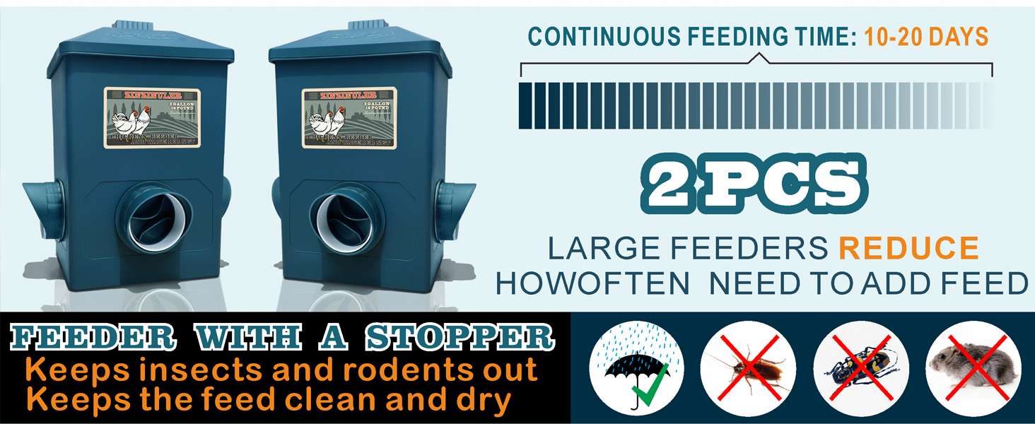 Optimiza la alimentación de tu rebaño con este set de 2 Comederos Automáticos. Cada unidad tiene una capacidad de 7 Kg (16 lbs), sumando un total de 14 Kg (32 lbs) de almacenamiento. Es la solución perfecta para propietarios ocupados que no pueden visitar el gallinero a diario, garantizando que tus aves tengan alimento disponible por largos periodos sin necesidad de recargas constantes.