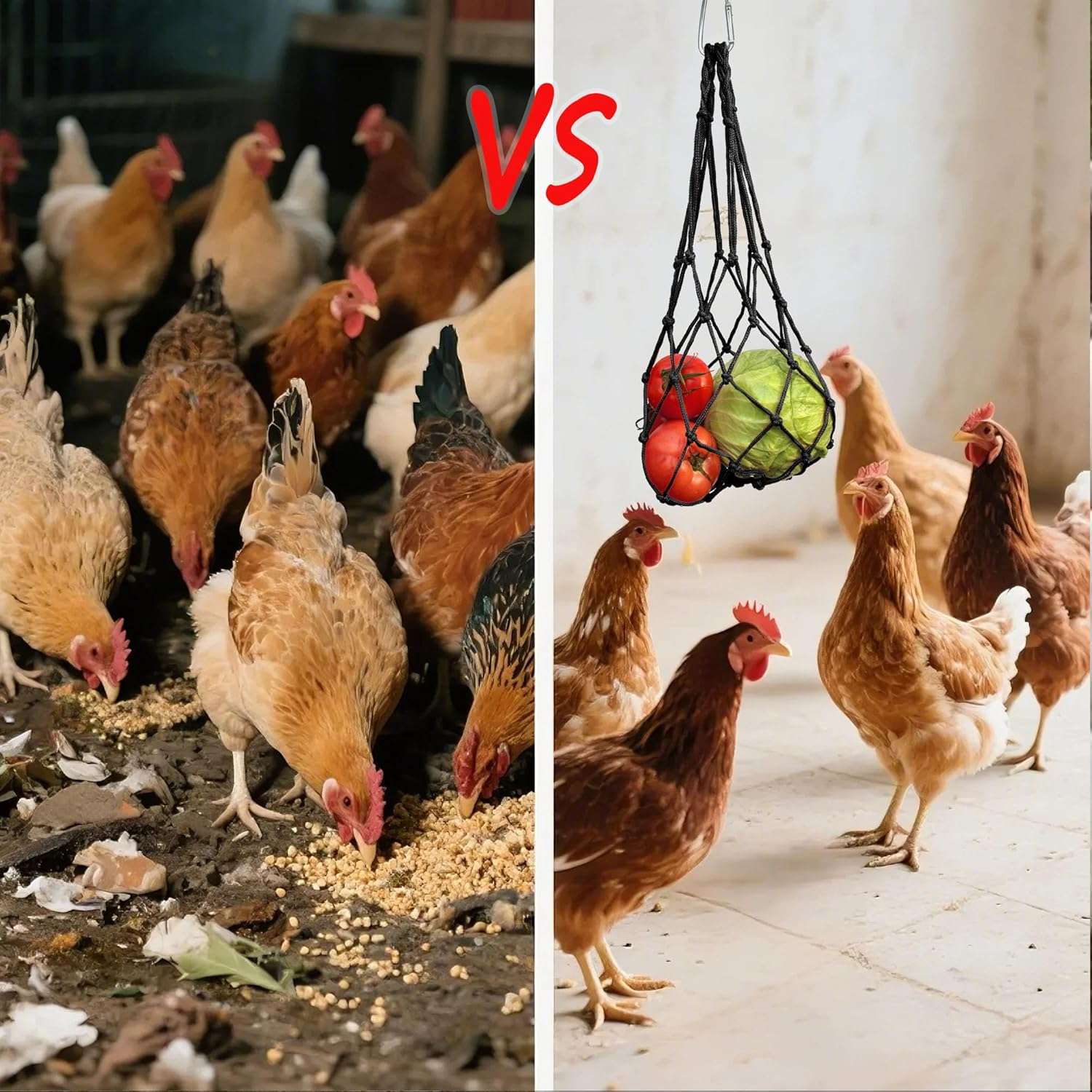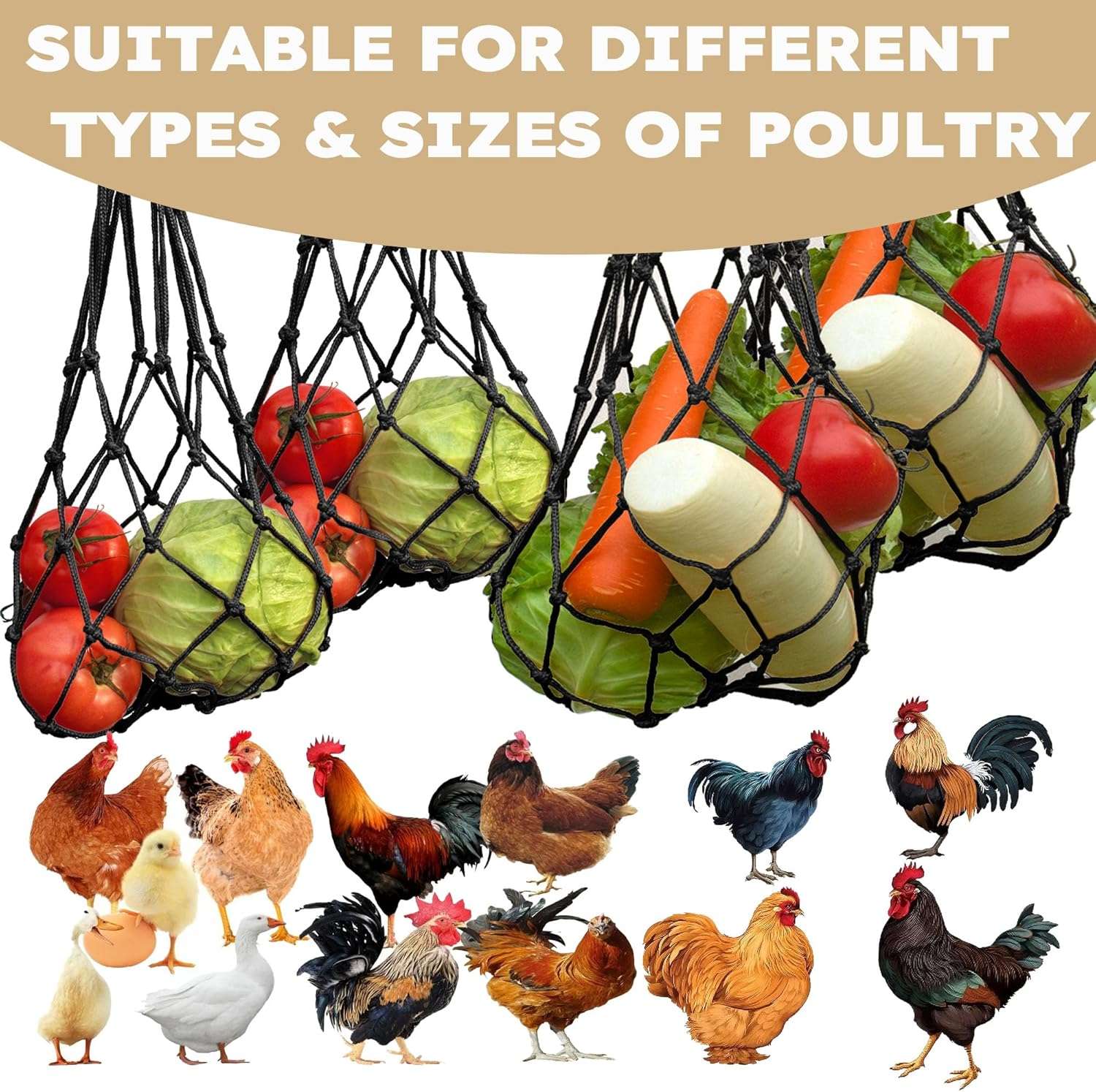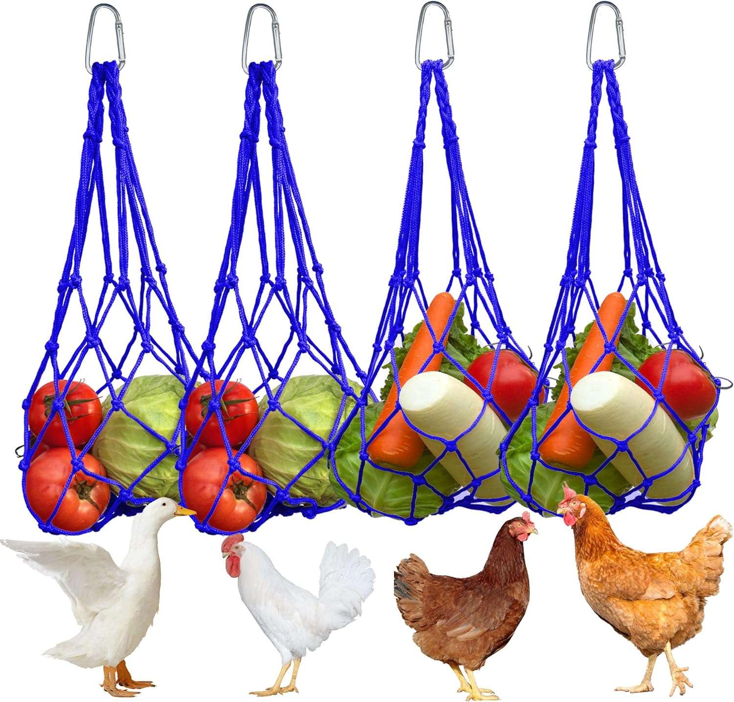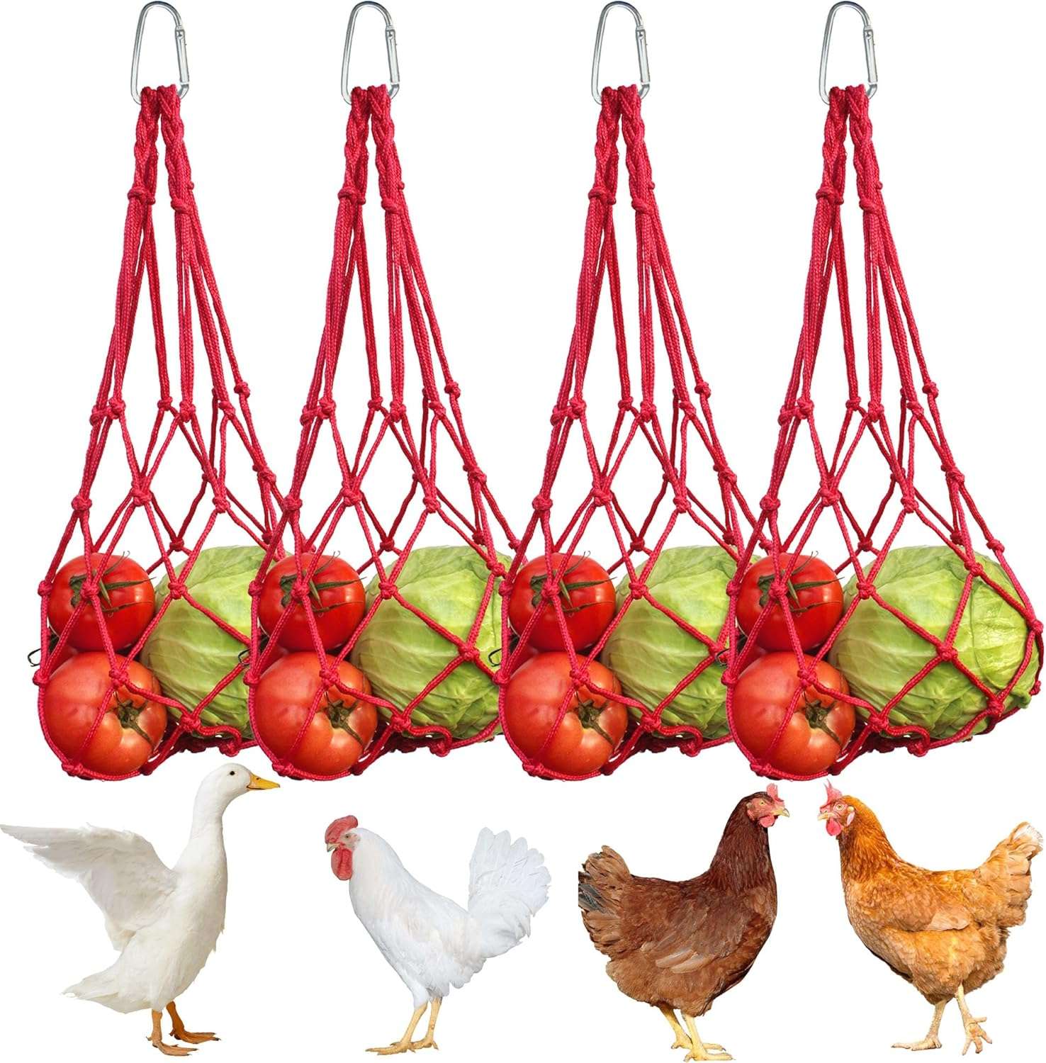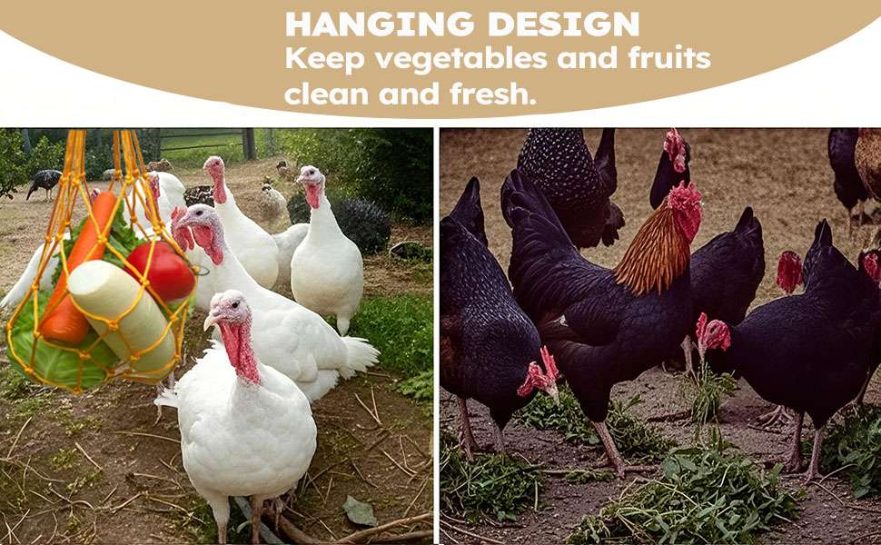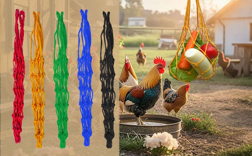 Transforma la hora de comer en una actividad entretenida. Este set incluye 4 Bolsas de Malla de Nylon de alta resistencia, diseñadas para colgar frutas y verduras dentro del gallinero. Al tener que picotear el alimento en movimiento, tus gallinas se ejercitan, simulan su comportamiento natural de forrajeo y liberan tensión, actuando como un potente Juguete Anti-Estrés que reduce el comportamiento agresivo en el rebaño.
