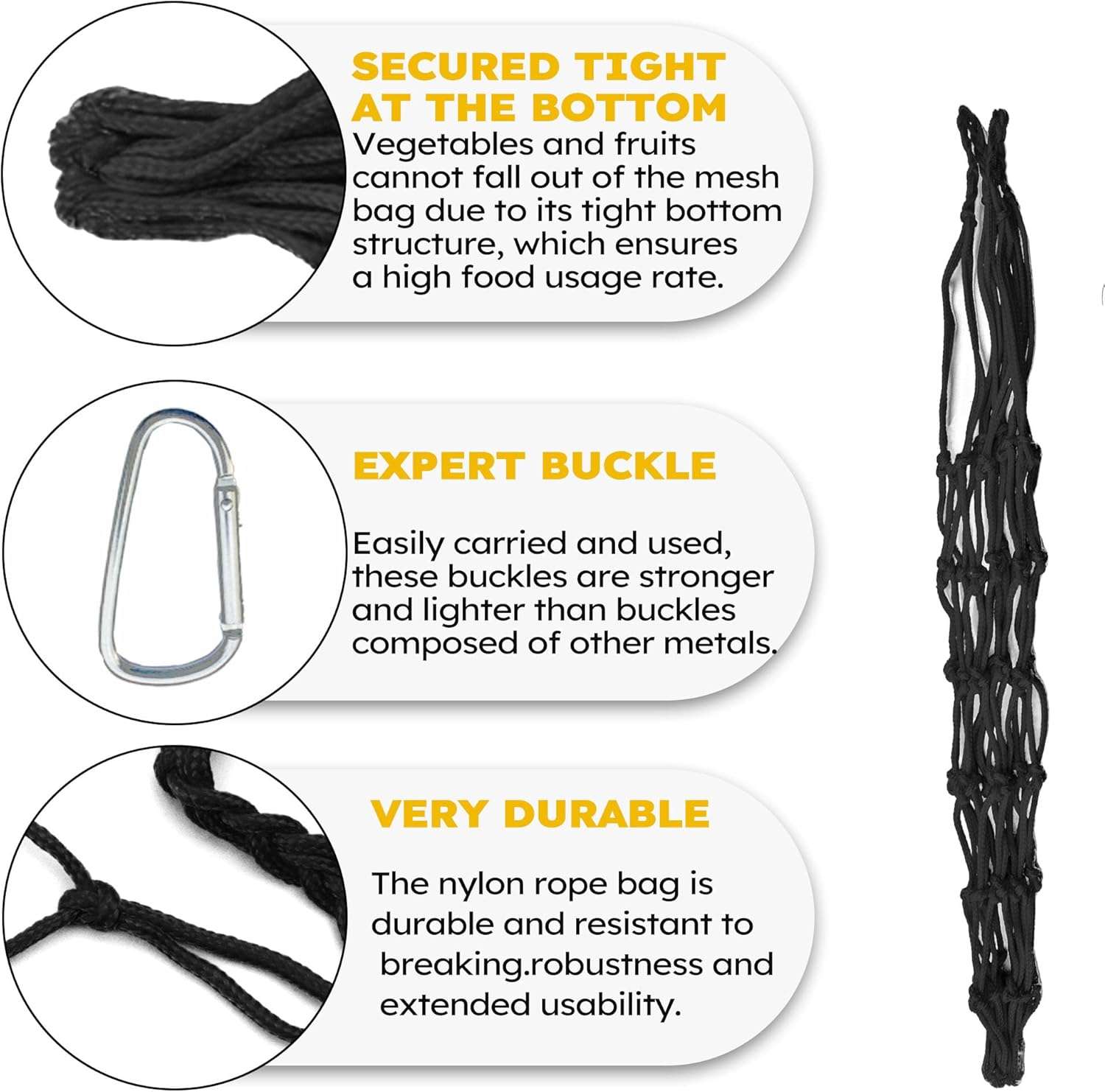 Fabricadas para resistir picoteos constantes. Estas mallas están hechas de Nylon de Alta Calidad, resistente al desgaste, a los desgarros y con protección contra rayos UV, por lo que son perfectas para usar al aire libre bajo el sol chileno. Son reutilizables y muy fáciles de lavar. El tejido es lo suficientemente denso para sostener el peso de verduras grandes sin romperse, pero abierto para permitir el fácil acceso de los picos.