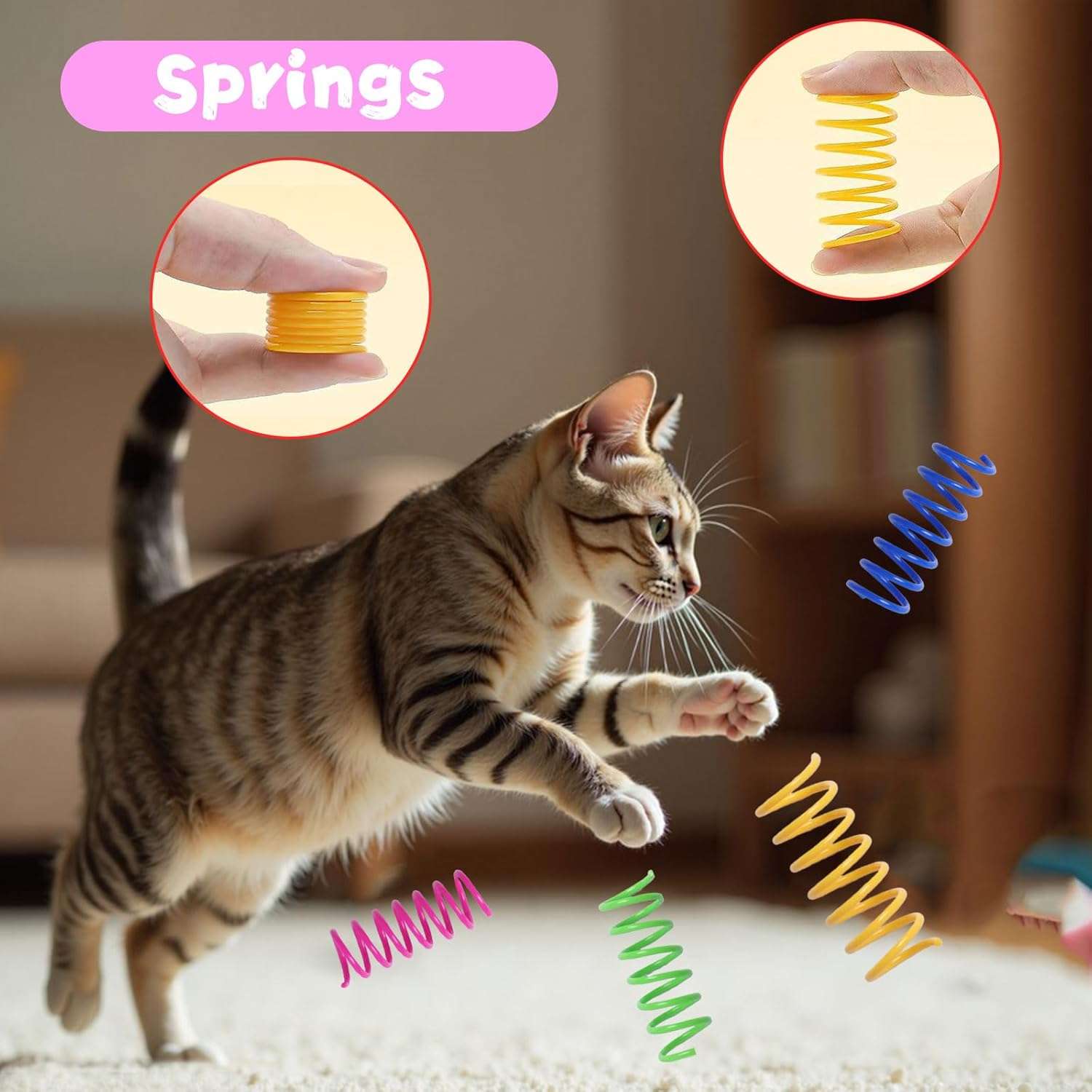 Este completo set de cuarenta juguetes interactivos es la opcion ideal para mantener a su gato entretenido y activo en cualquier hogar de Chile El paquete incluye una gran variedad de accesorios diseñados especificamente para estimular el instinto natural de caza y el juego de su mascota Contiene doce resortes interactivos seis bolas con cascabel seis bolas de pista ocho pelotas de pompones suaves y ocho bolas de pompones brillantes entregando diversion continua y variada
