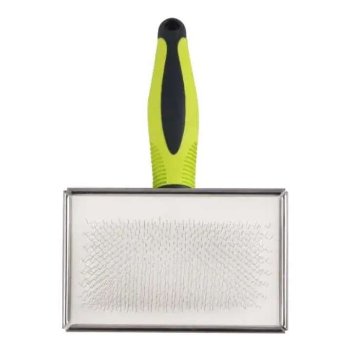 Eliminacion de Nudos y Pelo Muerto Este peine cuenta con puas de acero dobladas que logran penetrar profundamente en el pelaje de tu mascota Es altamente efectivo para sacar nudos remover el pelo muerto y sacar toda la capa de subpelo siendo ideal para perros y gatos de pelo medio a largo especialmente en epocas de muda