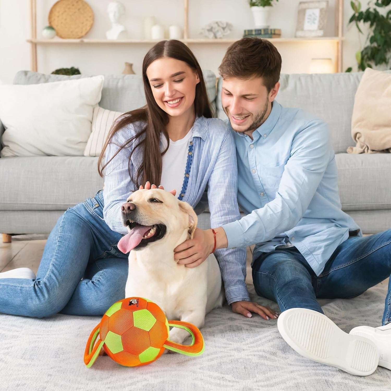 Esta pelota interactiva con asas es una de las opciones mas buscadas en Chile para fomentar el juego activo entre usted y su mascota Su estructura de 40 centímetros de largo por 20 centímetros de ancho y 20 centímetros de alto esta diseñada específicamente para razas medianas y grandes facilitando que su perro la pueda agarrar perseguir y transportar cómodamente tanto en espacios interiores como al aire libre