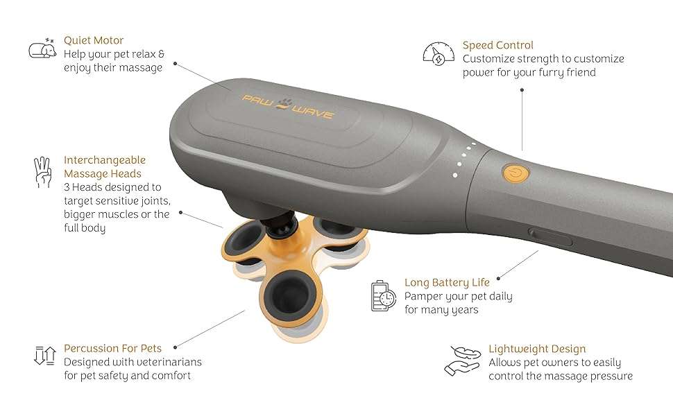 Calibrado Específicamente para Mascotas A diferencia de las pistolas de masaje para humanos (que pueden ser muy agresivas), el motor de este dispositivo ofrece la intensidad y amplitud de vibración exactas para ser seguras y placenteras en el cuerpo animal. Sus ondas de percusión suaves penetran el tejido sin lastimar ni asustar a tu mascota.