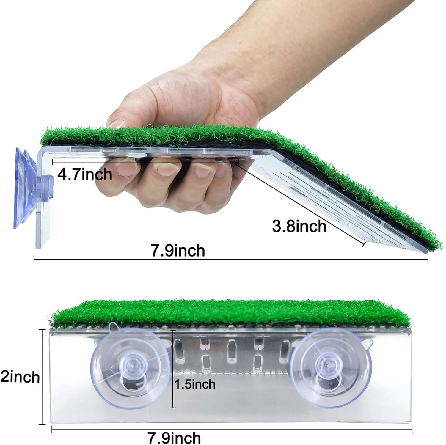 Diseño único: la superficie de la terraza de descanso de tortuga está cubierta con césped verde artificial que da tracción, lo que es muy atractivo para la tortuga para que puedan subir fácilmente a la plataforma y tomar el sol como deberían