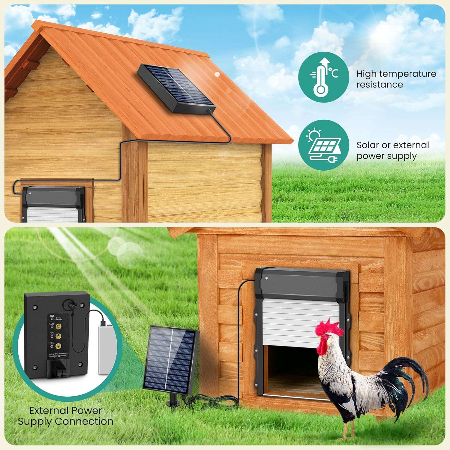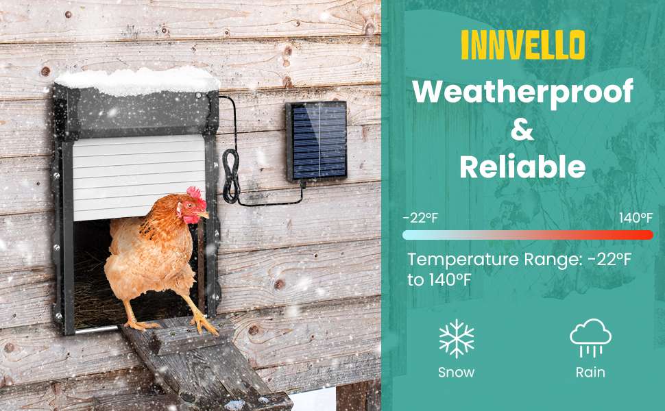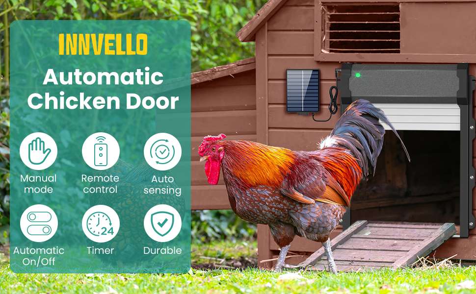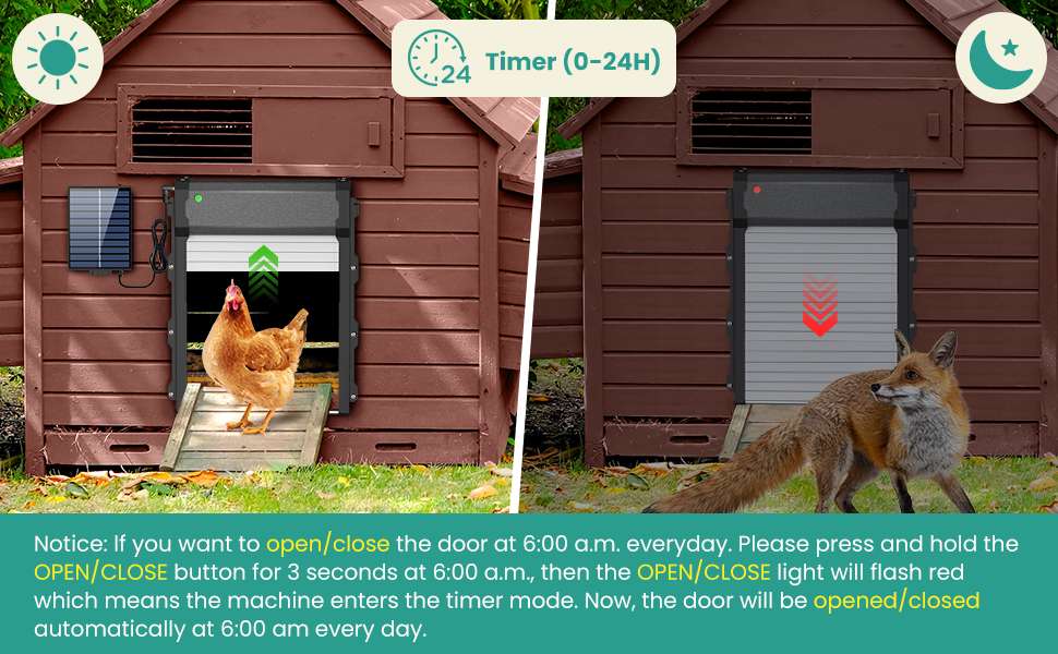 Simplifica la vida en tu parcela o granja con esta puerta automática robusta. Diseñada para quienes tienen un estilo de vida ocupado, este sistema se encarga de abrir y cerrar el gallinero puntualmente, manteniendo a tus aves seguras sin que tengas que estar presente.