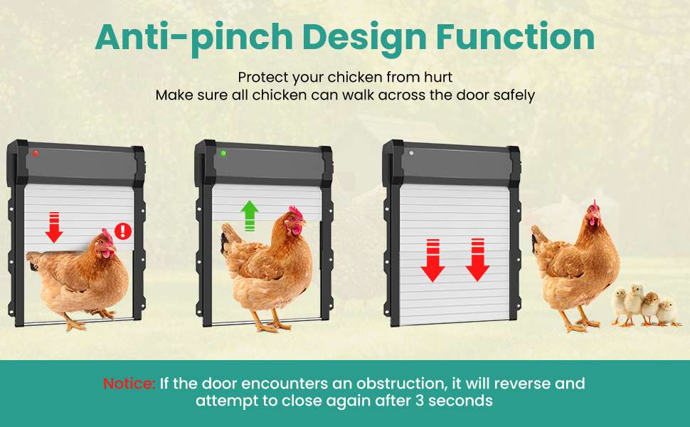 Temporizador Programable: Configura horas exactas de apertura y cierre según la rutina de tus gallinas.