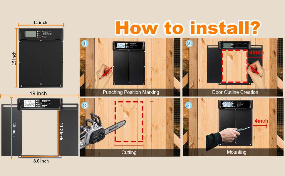 Puerta Automática de Aluminio para Gallinero con Apertura Horizontal y Pantalla LCD