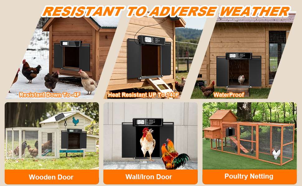 Construcción de Aluminio 100% Resistente Mientras que otras puertas usan plástico ABS que envejece y se rompe con el viento y la lluvia, nuestra puerta está hecha de aluminio robusto. Soporta condiciones extremas, desde heladas de -20°C hasta calores de 60°C, sin deformarse ni oxidarse, manteniendo a los depredadores fuera de tu gallinero.