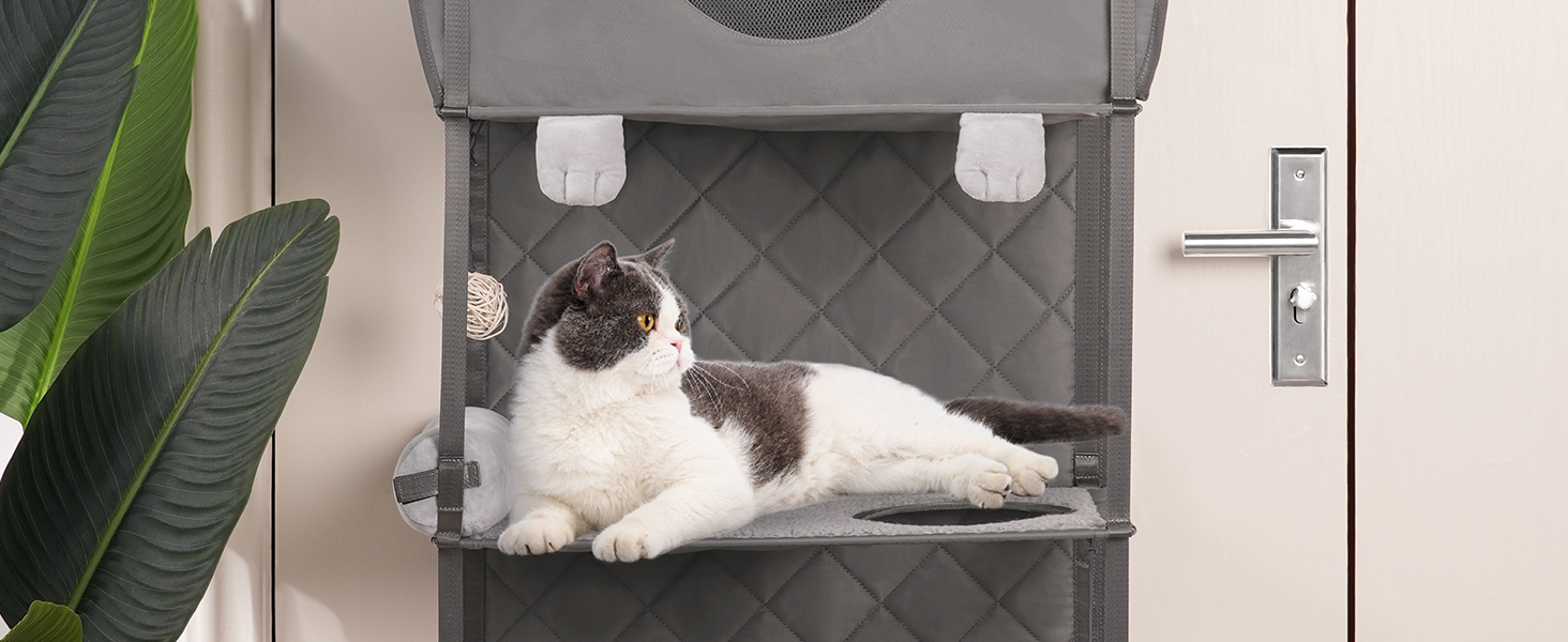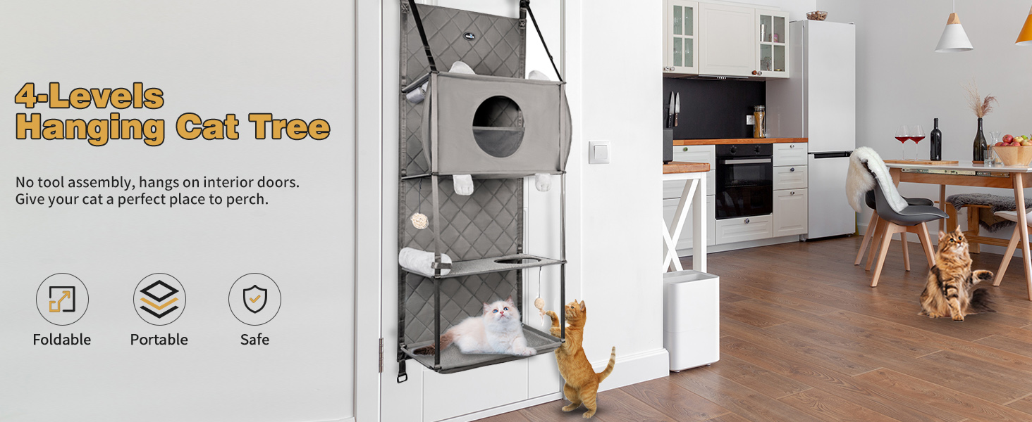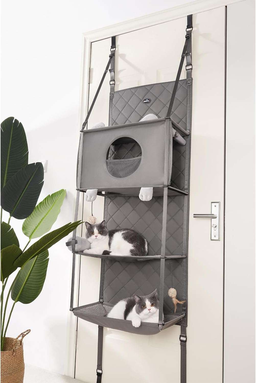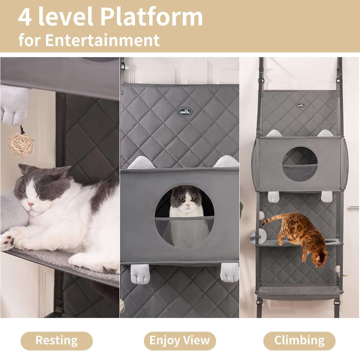 Rascador Colgante de Puerta (132 cm): 4 Niveles y Persianas de Privacidad para Varios Gatos.