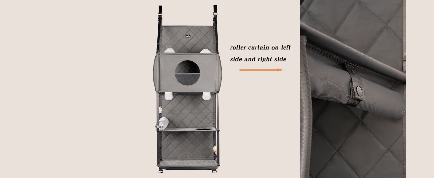 Diseño Unico con Persianas de Privacidad: Incorpora persianas enrollables que se pueden bajar para crear un espacio cerrado e independiente. Esto es ideal para gatos timidos que buscan seguridad o para oscurecer el espacio si hay mucha luz durante el dia, garantizando un descanso tranquilo.