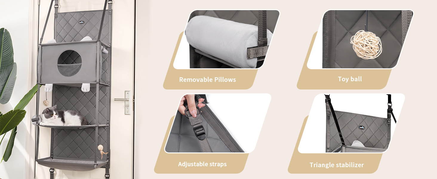 Comodidad y Entretenimiento: Incluye almohadas extraibles extremadamente comodas y dos juguetes colgantes. Es el lugar perfecto para que sus michis se posen, descansen y se entretengan durante horas.