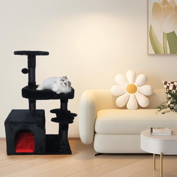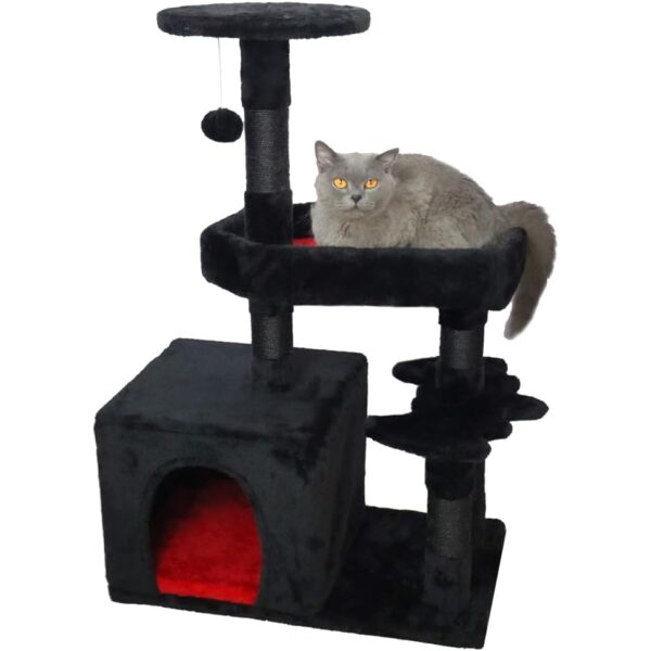 Acogedor y espacioso lugar de descanso: hay muchas opciones para que tus gatos elijan como su mejor lugar de descanso. Pueden sentarse en la plataforma superior para pasar por alto como un rey, o acurrucarse en la cama para gatos ataúd y jugar con la pelota colgando arriba, si están cansados, pueden volver a la casa del gato para dormir, que es simplemente un patio de juegos familiar para gatos.