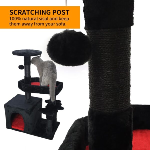 Calidad superior: compuesto por tablero de alta calidad certificado por CARB y tela de felpa, el árbol para gatos es muy suave y cómodo, a tu gato le encantará el tacto de felpa y disfrutará explorando y olfateando alrededor de su nuevo hogar. Los postes rascadores reforzados para gatos están cubiertos por una cuerda de sisal natural, un tipo de material saludable que a tu gato le encantará porque se siente muy parecido a rascarse en la corteza del árbol.