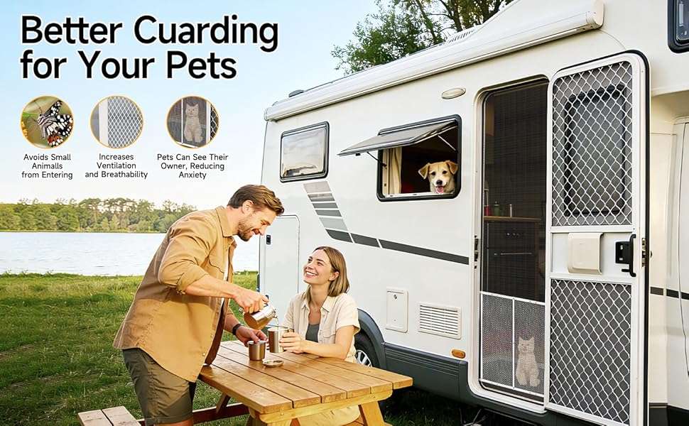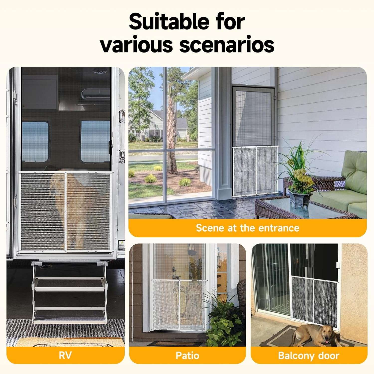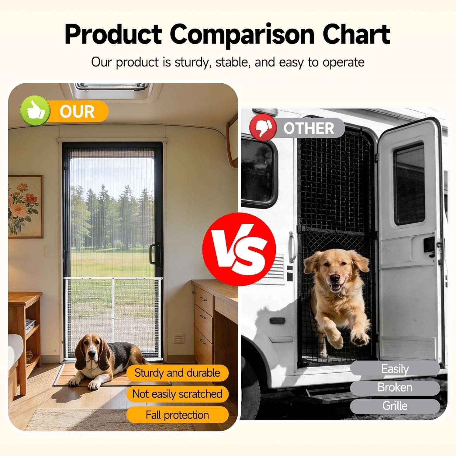 Doble Uso para Viajes y el Hogar Maximiza tu inversion con un producto totalmente versatil. Durante tus vacaciones, funciona como una barrera de seguridad indispensable para que tu mascota este segura dentro del motorhome mientras mantienes la puerta abierta para que entre el aire. Cuando regreses de tu viaje, puedes instalarla en la puerta del patio para evitar que tu perro escape hacia el jardin.