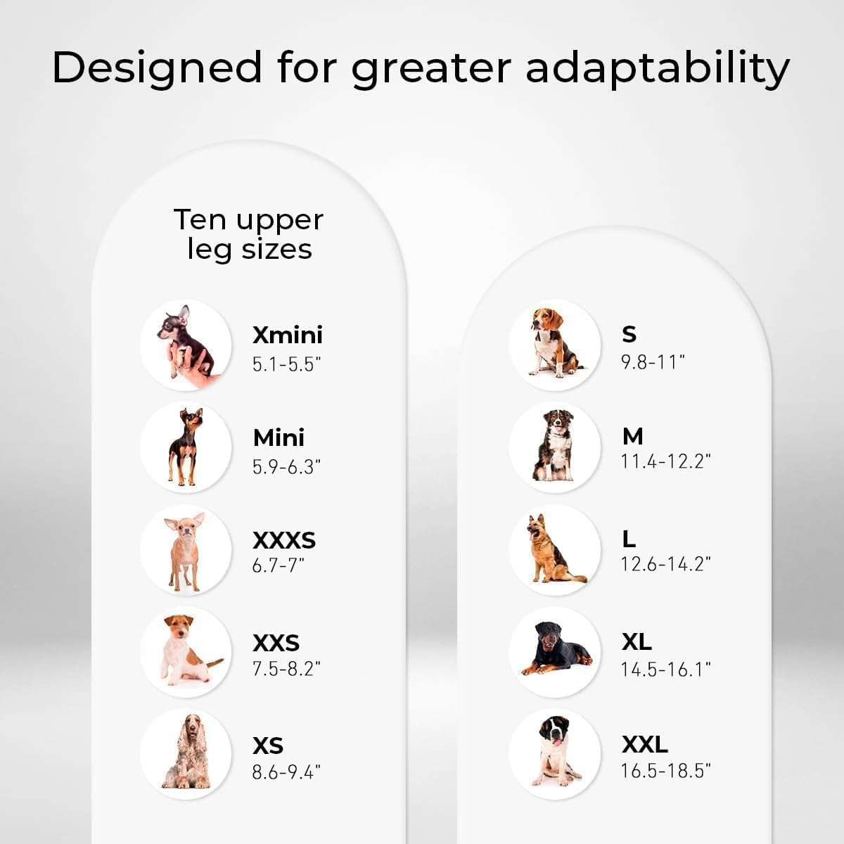 Para elegir la talla correcta, mide el contorno de la pata en la parte más alta del muslo (cerca de la ingle).