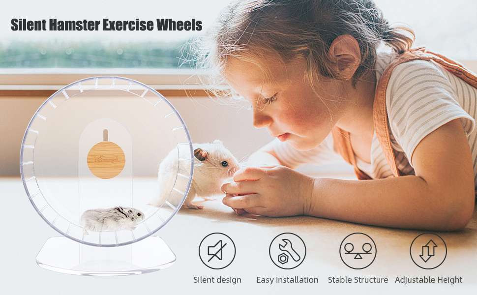 Altura ajustable y base sólida: diseñada para que tu mascota pueda entrar o salir de forma segura y fácil, la altura variable es de entre 1 pulgada y 4 pulgadas en la parte inferior: puedes ajustar la altura de la rueda para que se adapte al tamaño de tu mascota y a los materiales que hayas puesto en la superficie. El diseño de base sólida de esta rueda aporta comodidad, ya la coloques en una jaula construida por ti mismo, ya en un terrario, tanque de cristal o plataforma.