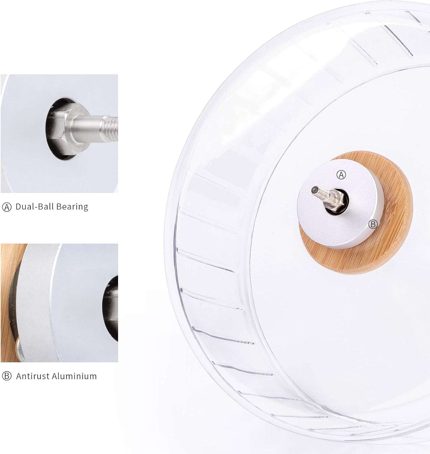 Juguete duradero y decoración bonita: producto fabricado con plástico PS (tambor para correr) y acrílico (base de rueda de hámster), alta transparencia y resistencia a la mordida, diseño robusto que logra un soporte y apoyo seguros cuando el hámster corre o camina.