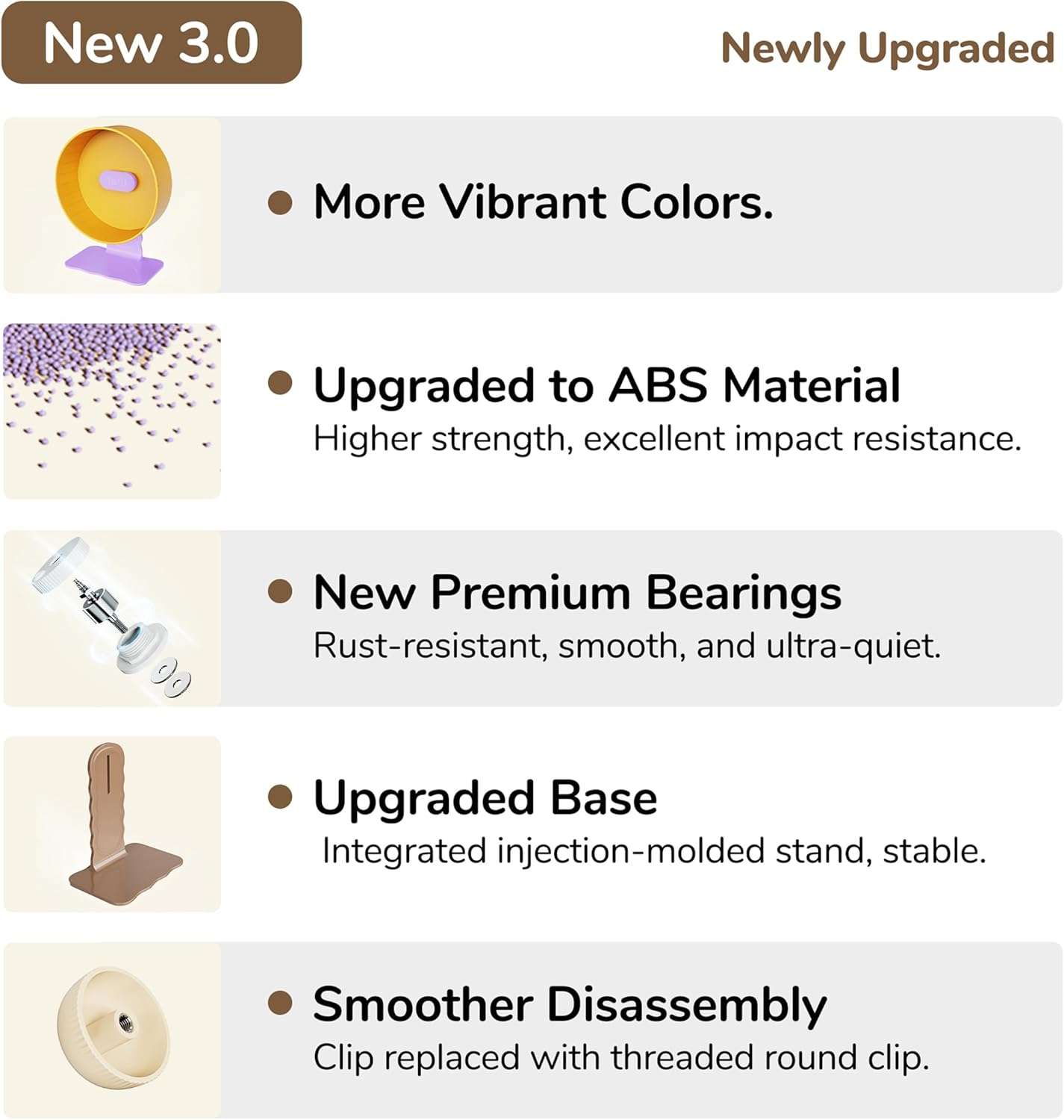 Duradero y decorativo: hecho de ABS seguro y de alta calidad (bandeja de correr), esta rueda es resistente a las masticaciones. Su diseño robusto proporciona un apoyo confiable al correr o caminar. Disponible en varios colores para aportar frescura al entorno de vida de tu mascota