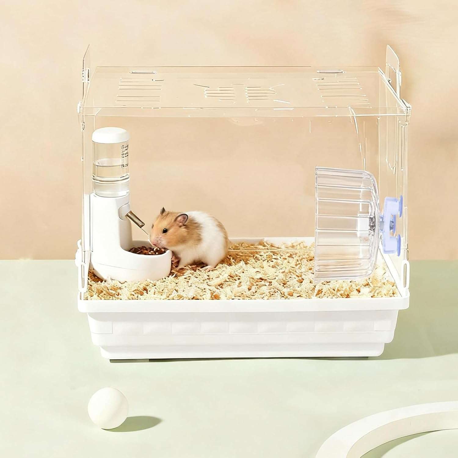 Tres métodos de instalación: uno se fija de forma segura al lado de las jaulas para hámster para una fácil instalación; otro cuenta con una ventosa que se adhiere a superficies lisas de la jaula; el tercer modelo incorpora un diseño de base estable. Adecuado para varias jaulas, recintos de reptiles y tanques de vidrio, también se puede colocar directamente en plataformas.