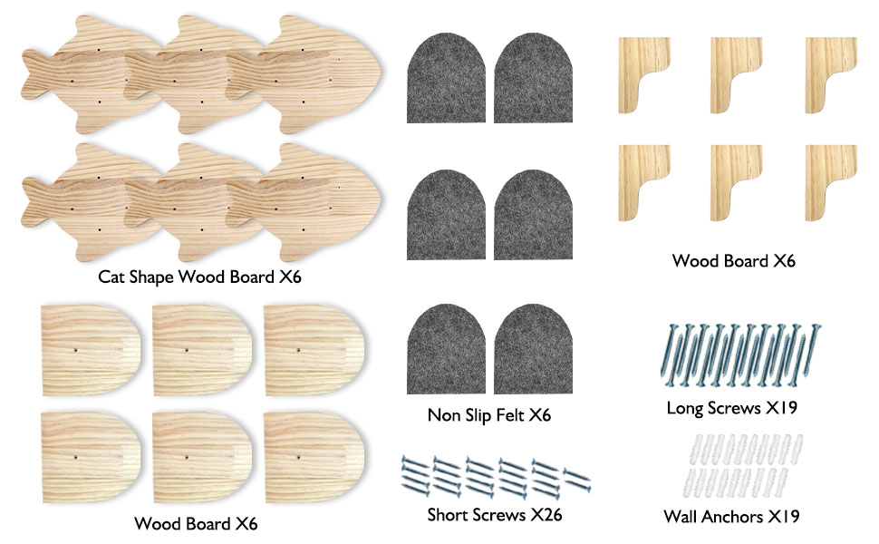 Medidas Ideales por Repisa: Cada escalon individual mide 19 centimetros de largo, 18 centimetros de ancho y 20 centimetros de alto (7.5 x 7.1 x 7.9 pulgadas). El set incluye 6 de estas camas o escalones y todos los accesorios de montaje. Las tablas tienen agujeros reservados para facilitar la instalacion en la pared.