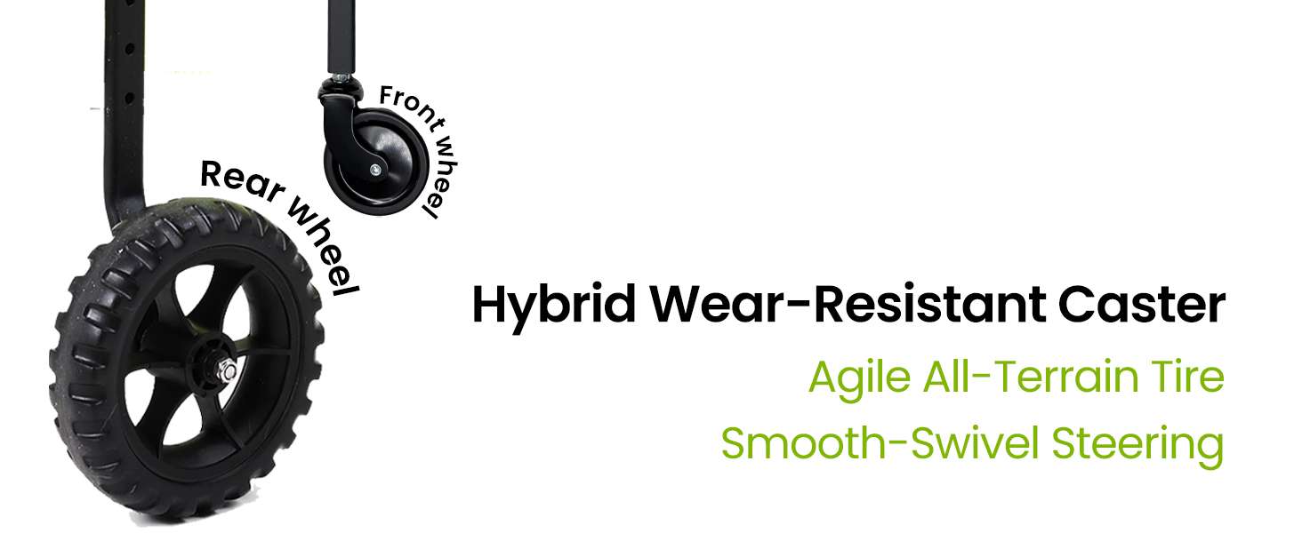 Ruedas EVA de 14 cm (5.5″): Neumáticos de espuma que no se pinchan y absorben los impactos. Perfectos para pasto, veredas y tierra.