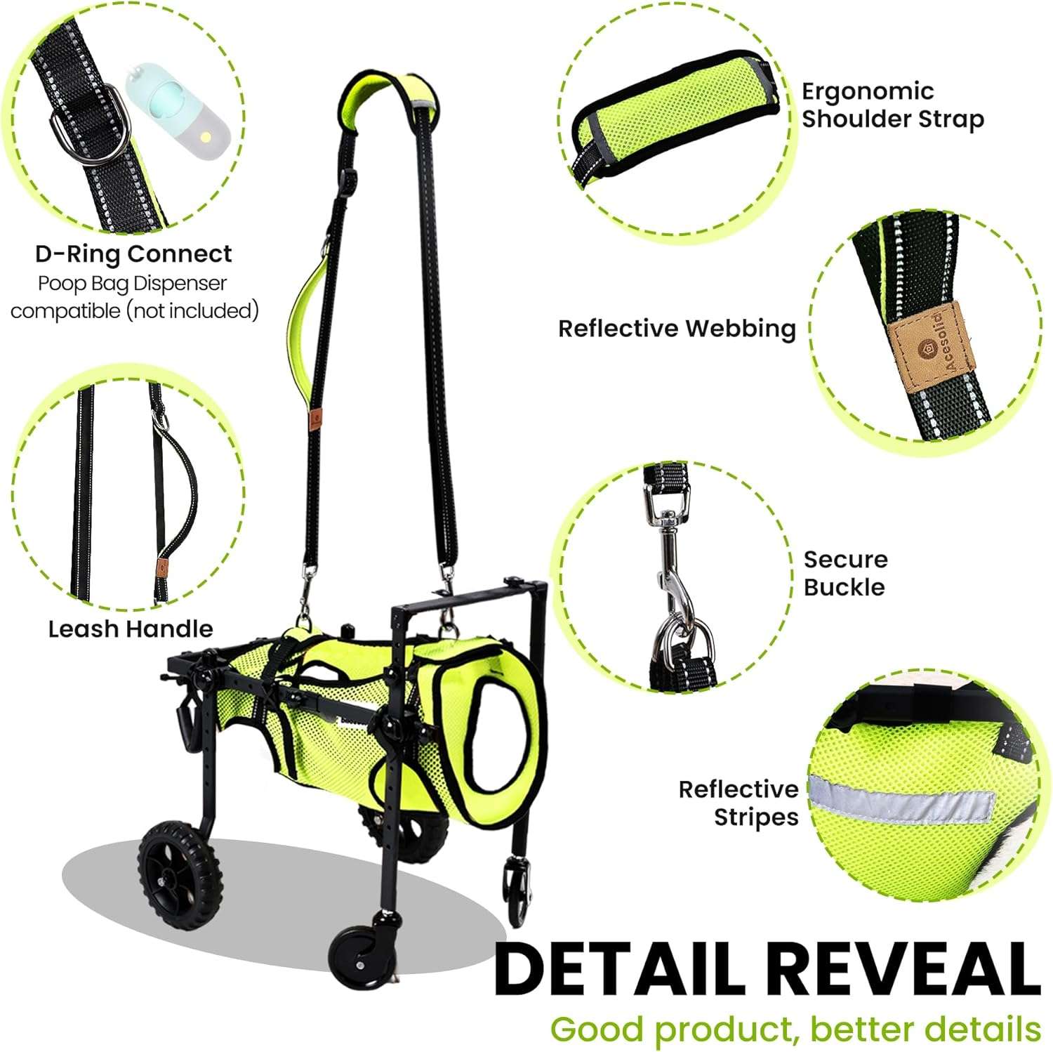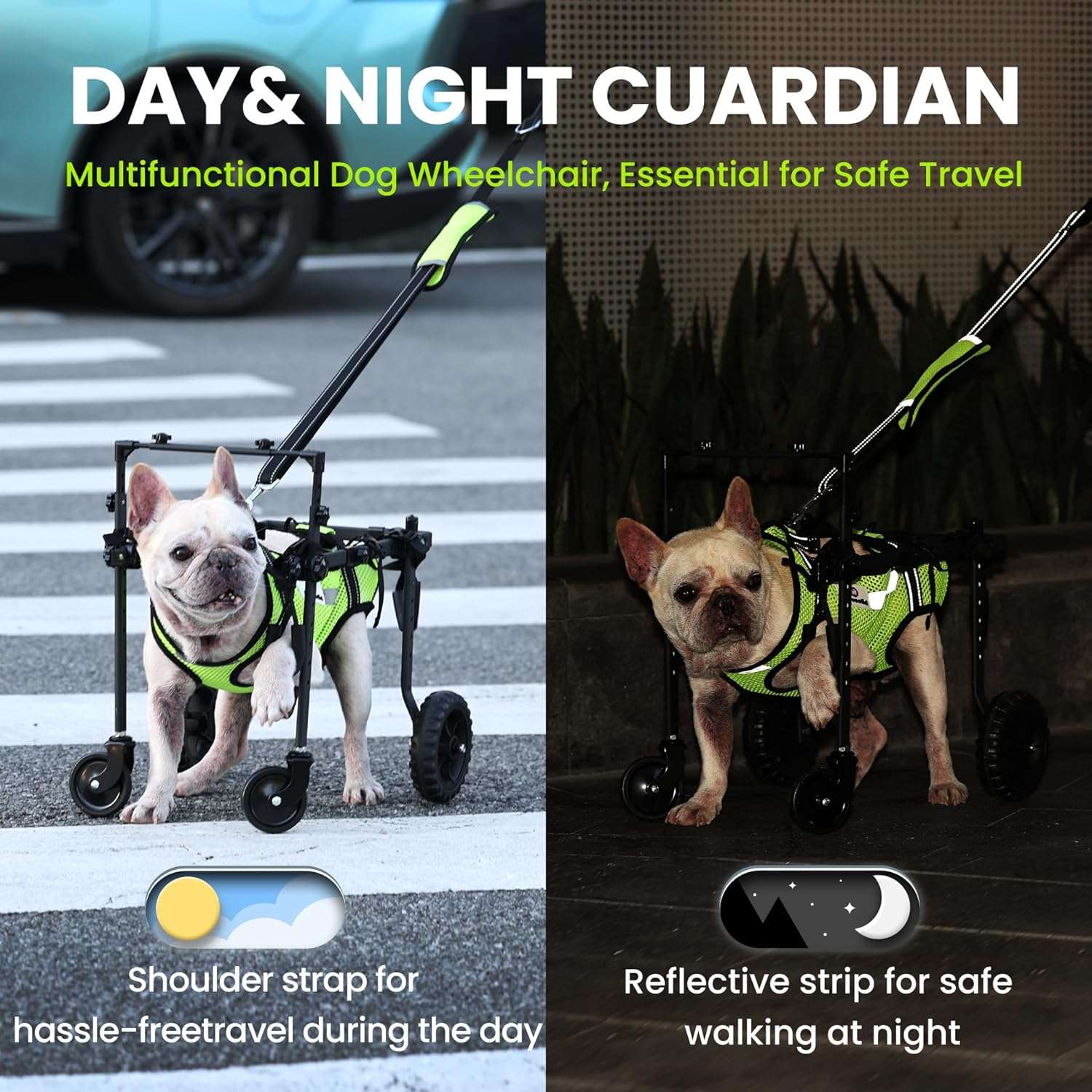 Estabilidad Total: A diferencia de los carritos tradicionales, el diseño de cuatro apoyos distribuye el peso de manera uniforme. Es ideal para rehabilitación temprana o perros muy inestables.