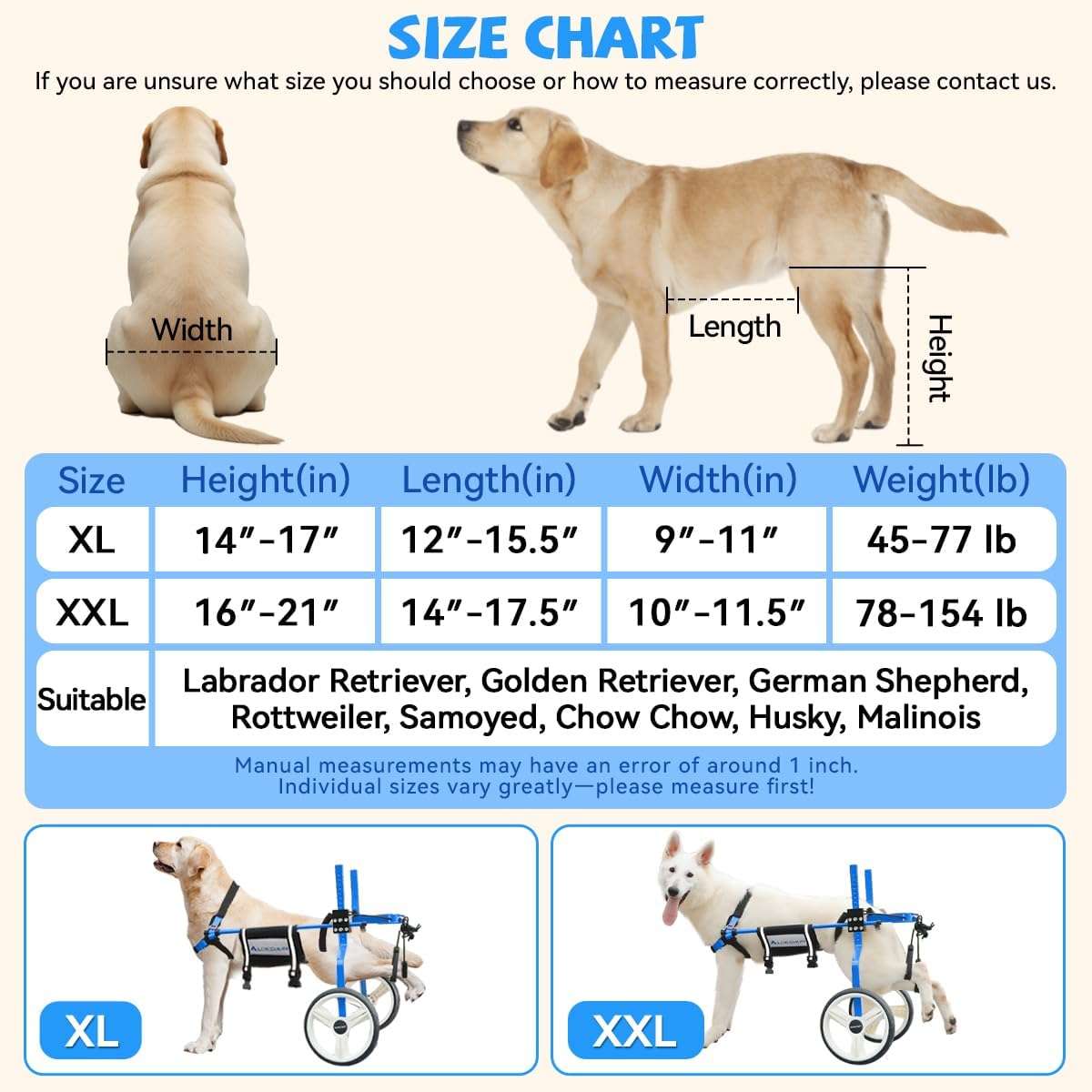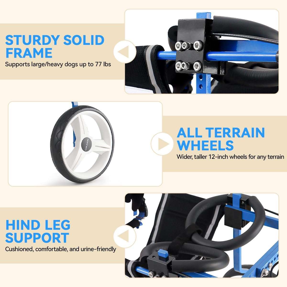 Movimiento Suave: Los rodamientos de alta calidad aseguran que el perro no tenga que hacer fuerza excesiva para arrastrar la silla, a pesar de su tamaño.