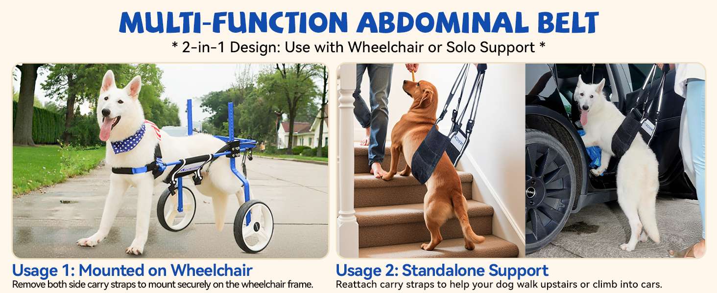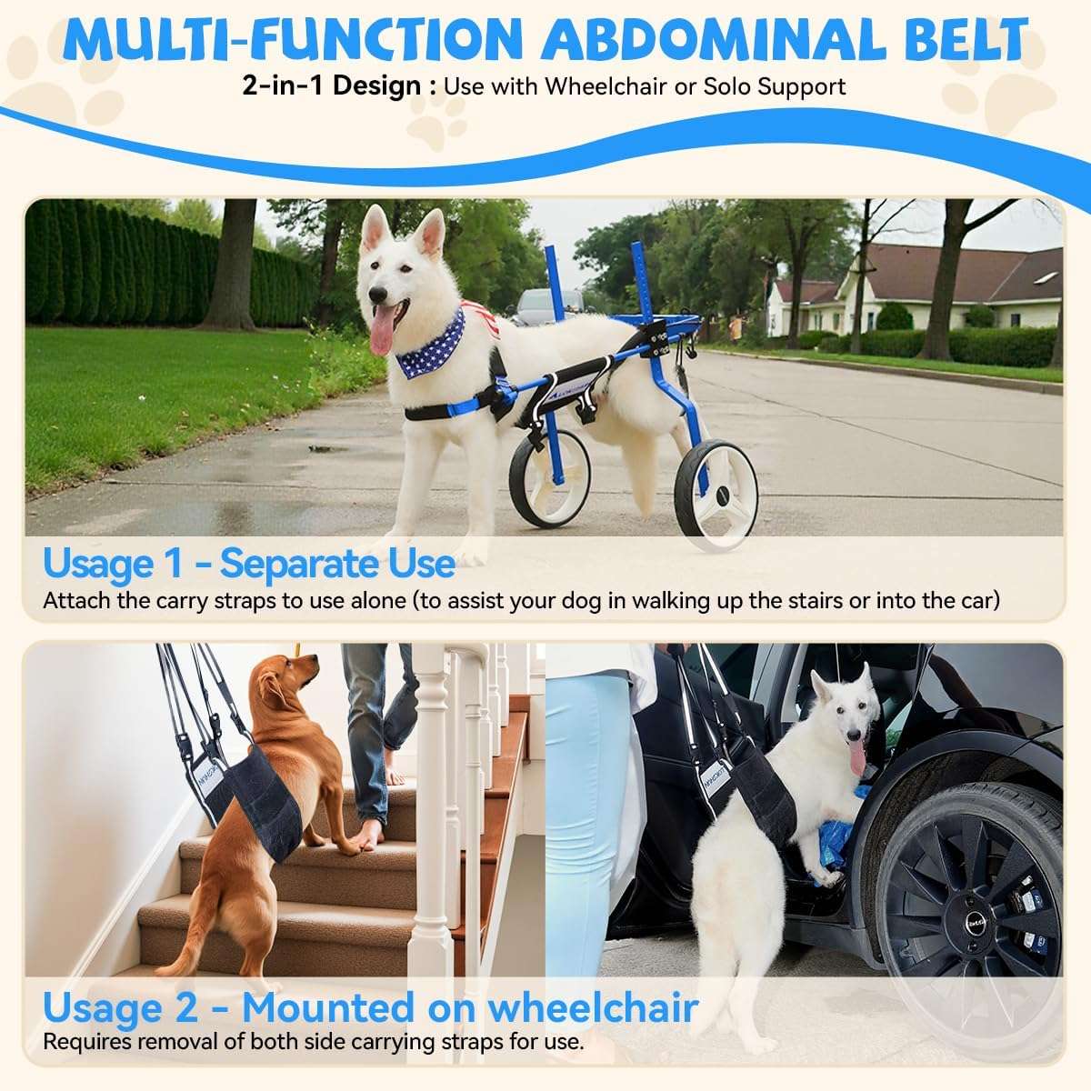 Función de Ayuda: Este mismo cinturón funciona de forma independiente como un Arnés de Elevación manual. Úsalo para ayudar a tu perro a entrar al auto o subir escaleras sin lastimarte la espalda.