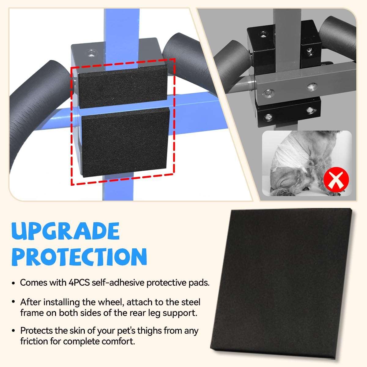 Anillos de Espuma (Cero Roce): A diferencia de las sillas comunes que usan correas rígidas, este modelo utiliza anillos de espuma suave para sostener las patas traseras. Esto ofrece amortiguación, evita heridas por fricción y permite que el perro orine sin obstrucciones.