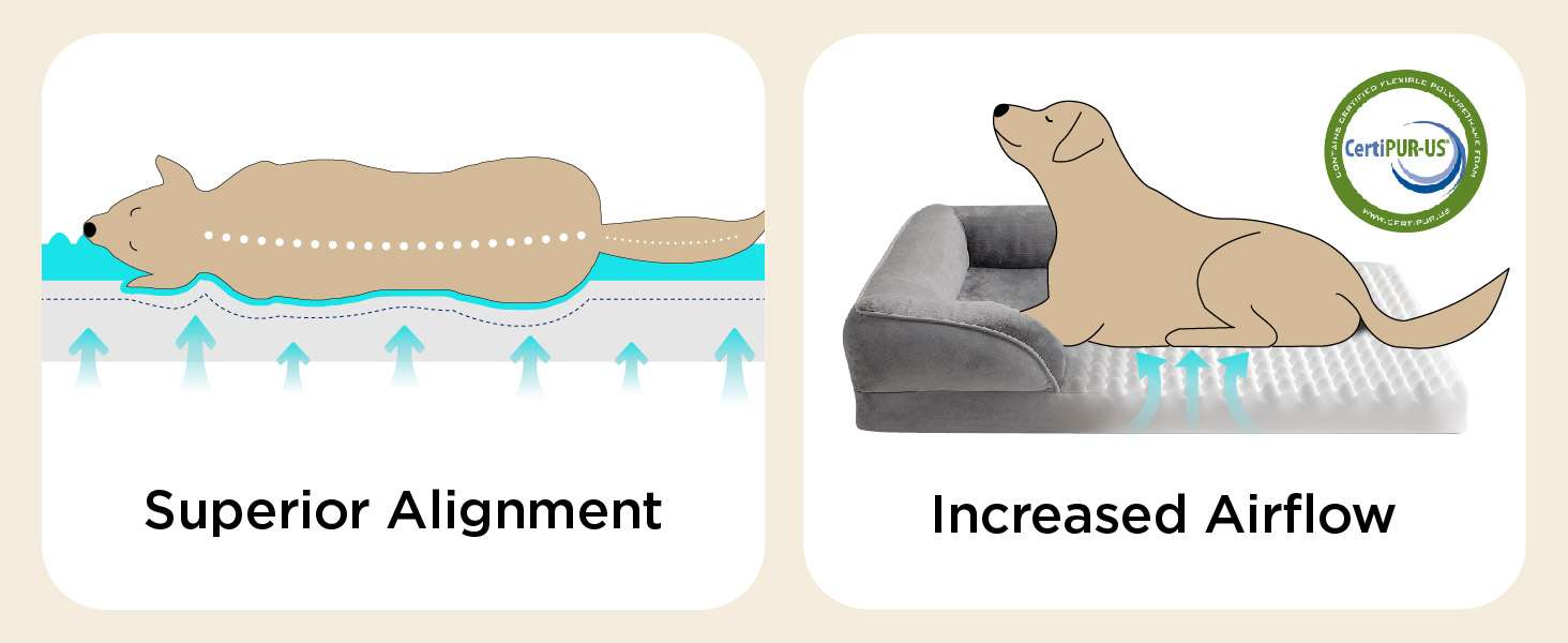 Nuestro Sofá Cama Ortopédico está diseñado para brindarle a tu mascota un soporte superior, garantizando un descanso profundo y reparador. La espuma de alta densidad con forma de caja de huevos distribuye el peso de manera uniforme, proporcionando el alivio de presión perfecto y el soporte articular que tu perro necesita.