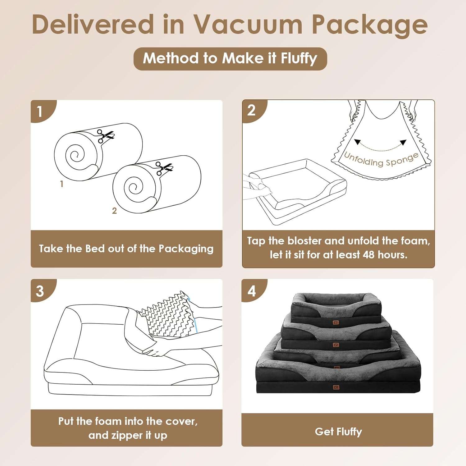 Una vez desembalada, deja la cama en un lugar seguro y espera 24 a 48 horas para que la espuma se expanda completamente y tome su forma final.