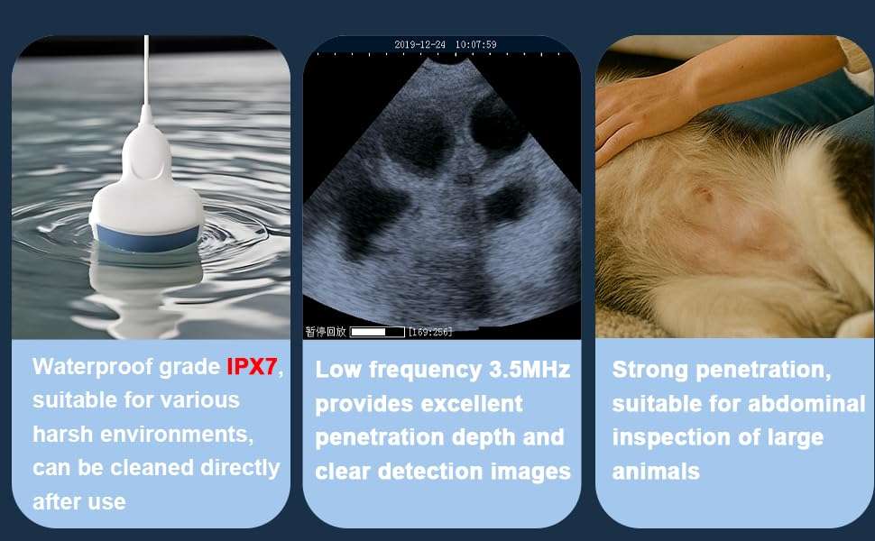 Eficiencia: Permite al veterinario ubicar el órgano objetivo o el feto rápidamente, reduciendo el tiempo de sujeción del paciente y el estrés animal.