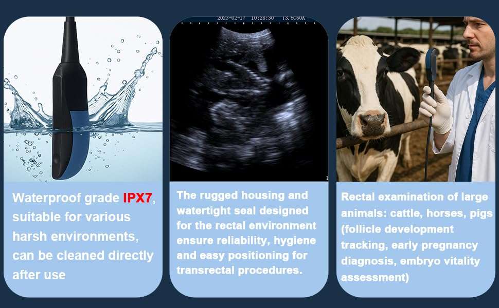 Diagnóstico Precoz: Detecta gestaciones tempranas y evalúa la viabilidad embrionaria, reduciendo los “días abiertos” y aumentando la rentabilidad del rancho.