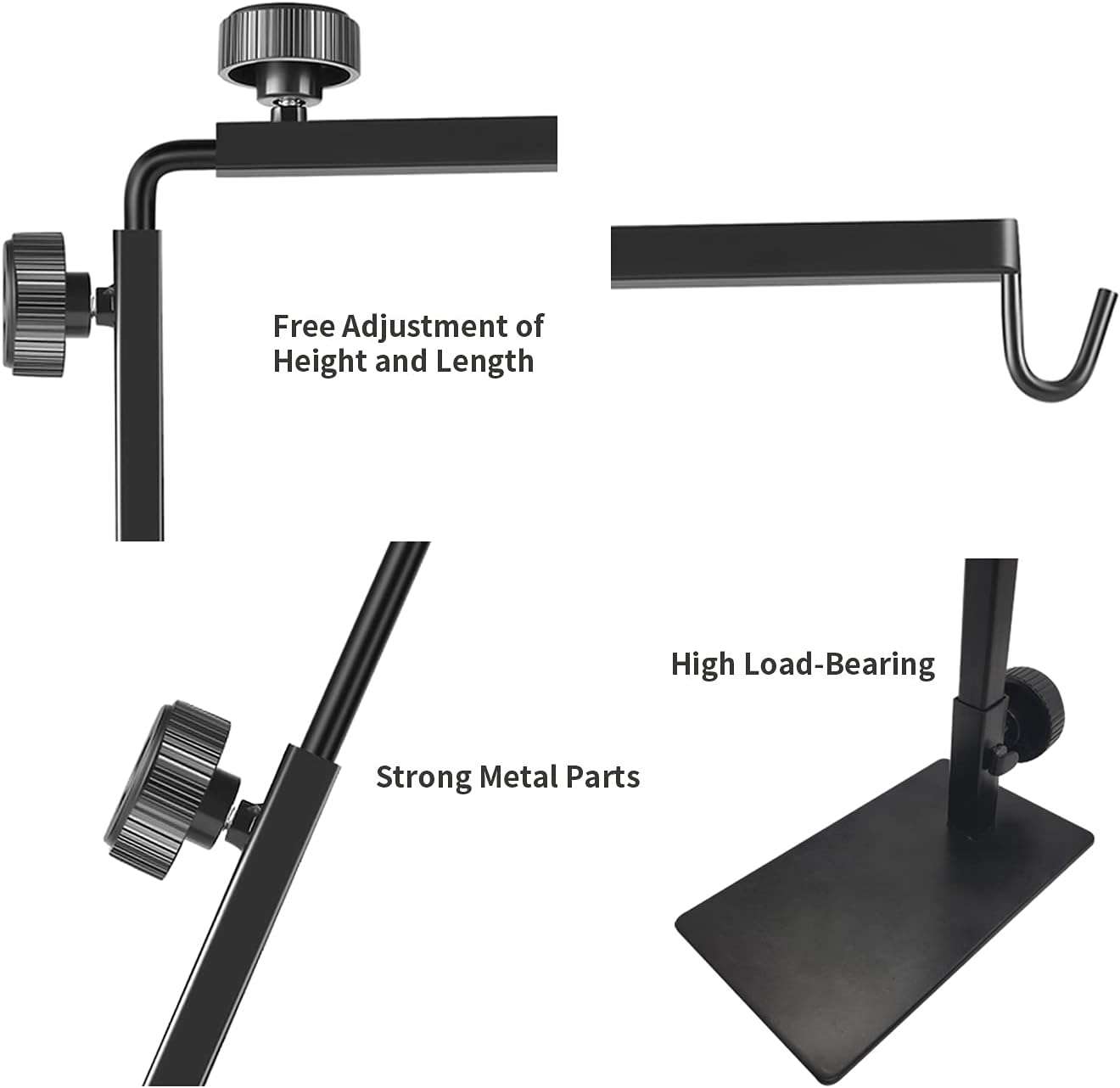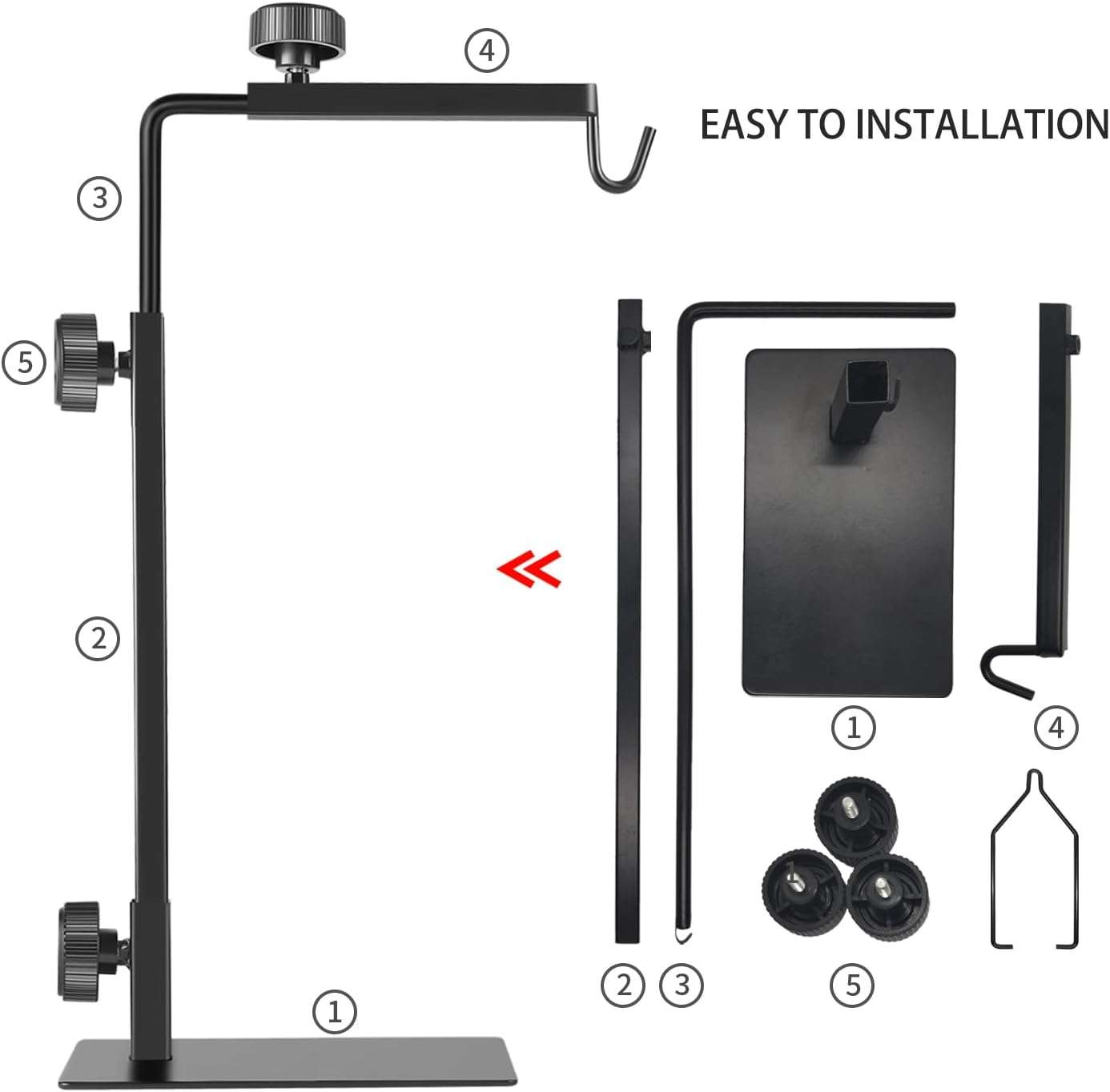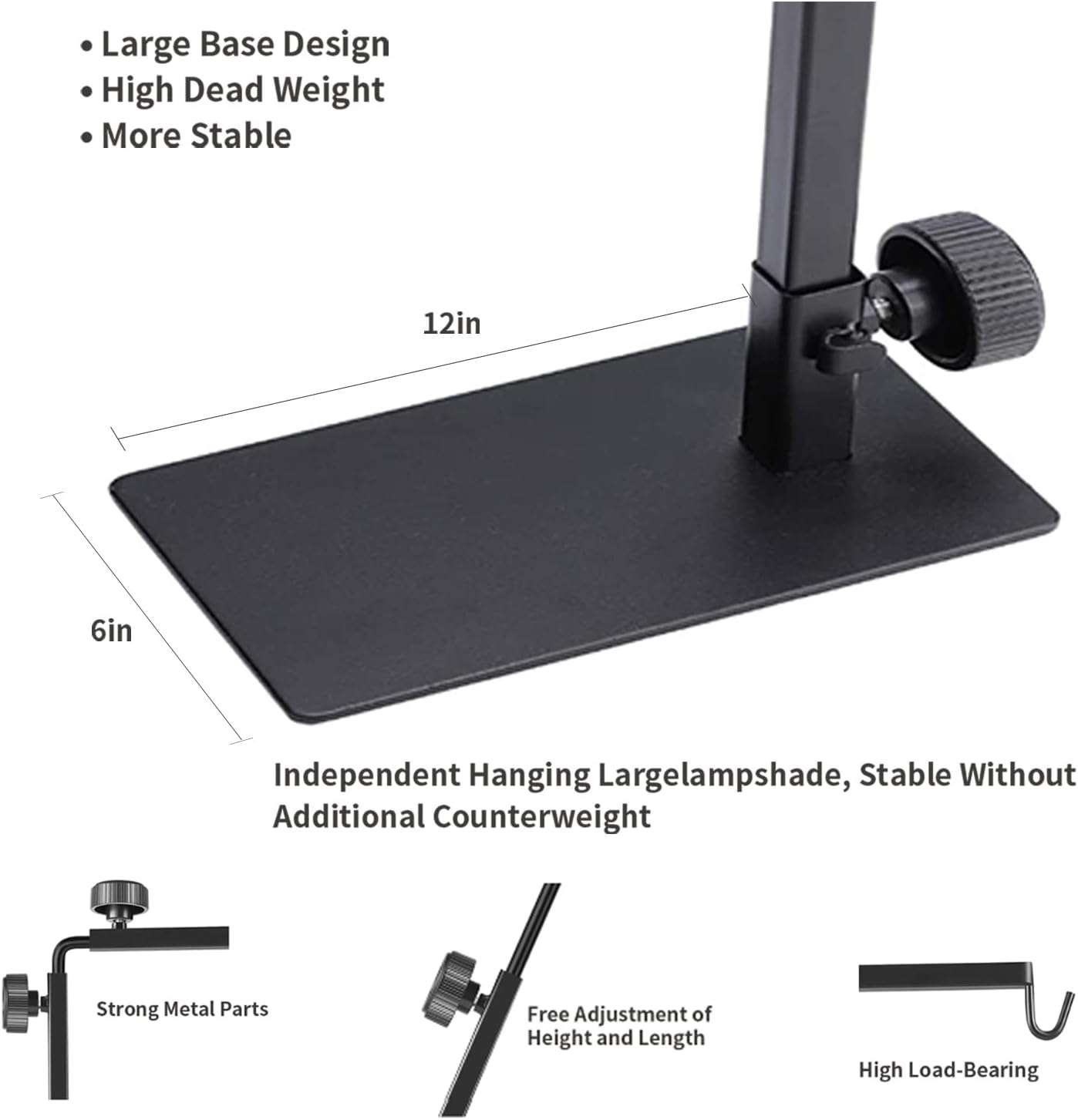 Fácil de instalar y firme estable: el soporte de la lámpara es fácil de instalar. La base del soporte de la lámpara es de aproximadamente 12 x 6 pulgadas, y el diseño de estabilidad de ensanchamiento y aumento de peso se adopta para hacer que el soporte de la lámpara sea más estable. Puede soportar de forma independiente la pantalla colgante y moverla y ajustarla rápidamente, o insertar la base en el espacio en la parte inferior del recipiente de vidrio para su uso (ver descripción de la figura). Este producto proporciona accesorios de gancho de metal gratis, que se pueden utilizar para colgar pantallas de lámparas