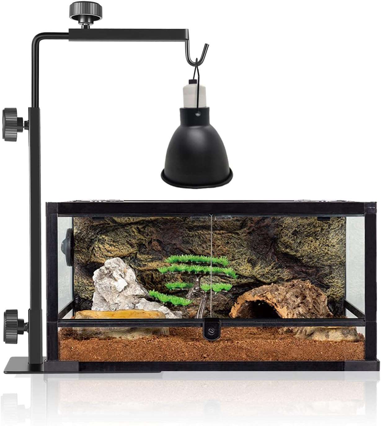 Resistente y de alta carga: el soporte para lámpara de reptil está hecho de estructura totalmente metálica y es duradero. Puede instalar fácilmente las lámparas de calefacción y el equipo de iluminación en la parte superior del recipiente de vidrio, y ajustar la altura y la posición libremente. La alta carga puede colgar pantallas dobles o incluso 3 pantallas.